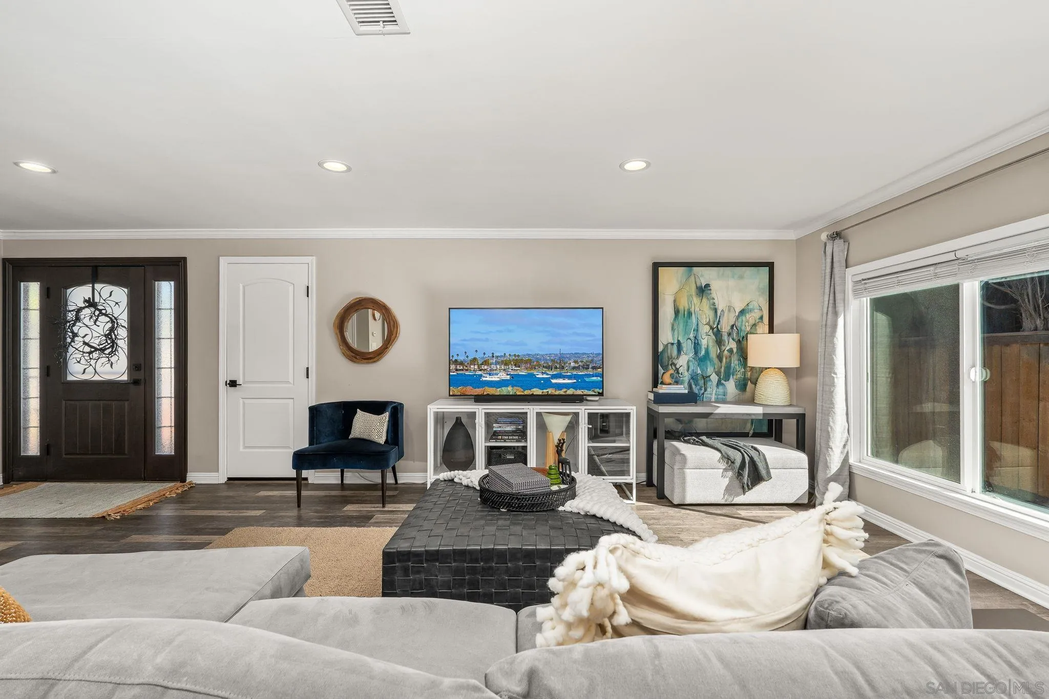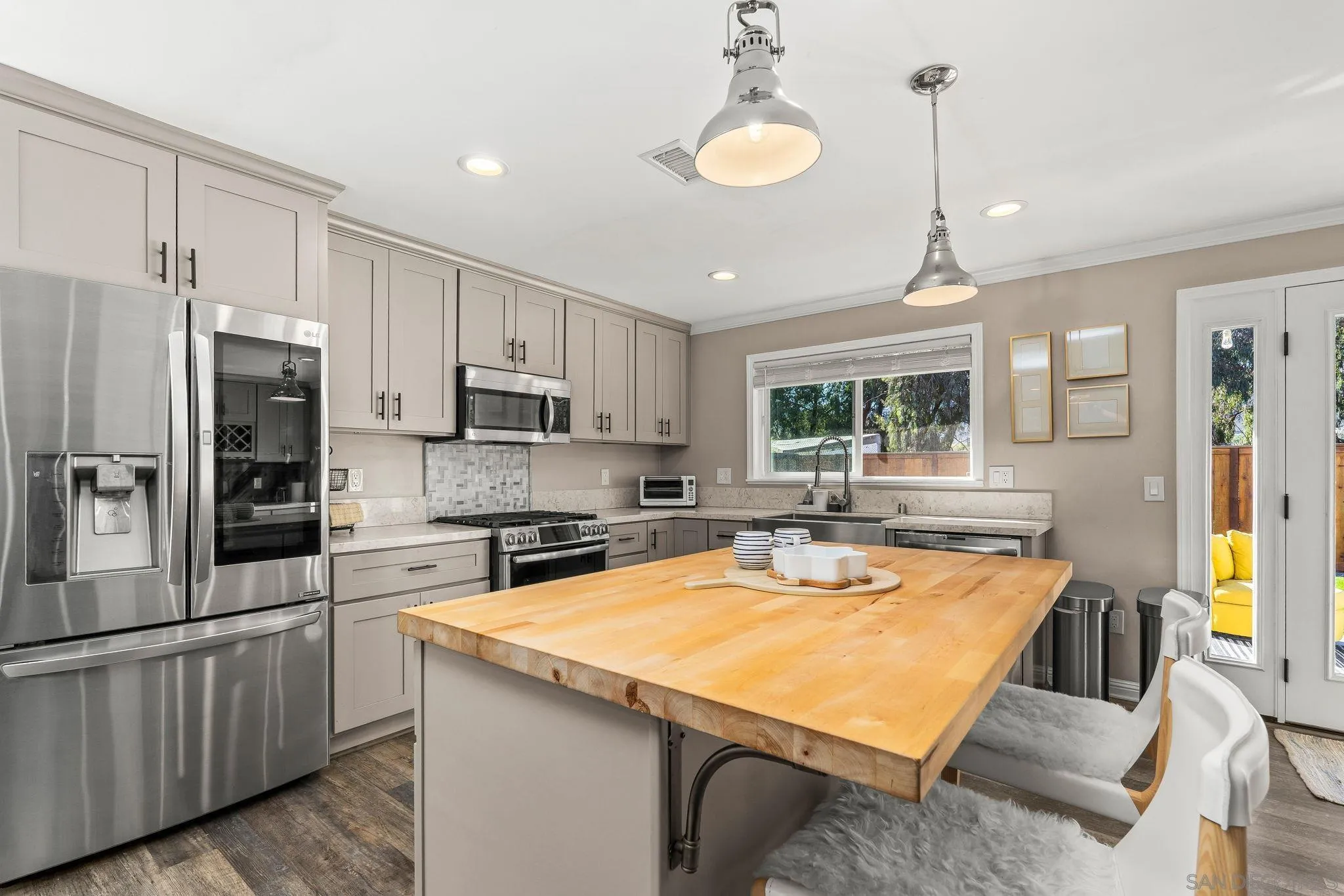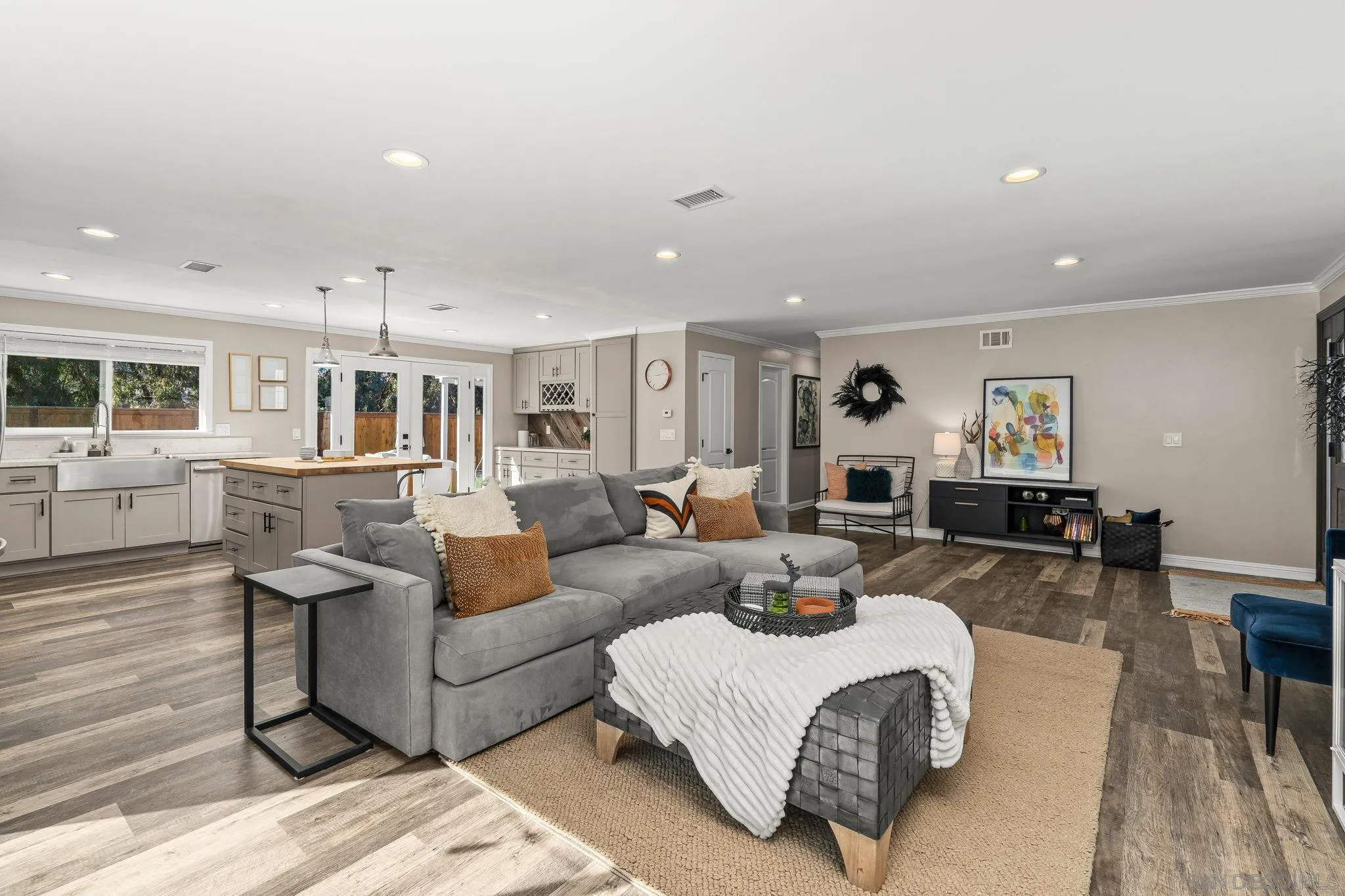 Well maintained 3Bed/2Bath, large kitchen to family room with built-ins and stainless steel appliances, oversized sink, pendant lighting over Island, canned lighting throughout the home, open floor plan with finished backyard, 2 car garage with sealed garage flooring in sought after Carlton Oaks neighborhood. Two full sized bathrooms with art decor tile, 1 with full size tub and 2nd with low threshold walk-in shower. This home was remodeled in 2019 and sellers have maintained its beauty along with finishing the backyard, adding turf and landscaping, retractable screen doors to accommodate French doors, renovated garage roof to slanted roof water roll off with double layering, glass storm door entrance and a new water heater. Agent related to Seller.