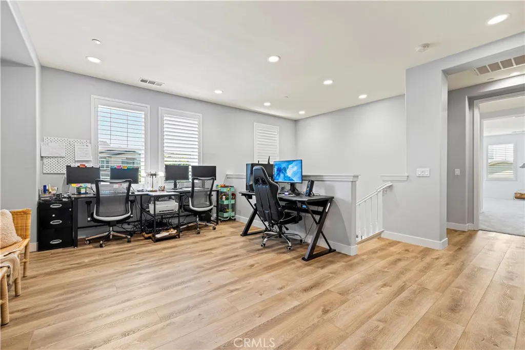 Welcome to 20825 Red Sky Court, located within the prestigious gated community of Five Knolls in Santa Clarita. This beautifully appointed home offers approximately 4,003 square feet of expansive living space, thoughtfully designed to balance comfort, functionality, and style. The residence features five spacious bedrooms and five bathrooms, ideal for both everyday living and entertaining. Upon entry, laminate flooring, recessed lighting, and refined finishes create a warm and inviting atmosphere throughout. At the center of the home is a gourmet kitchen equipped with stainless steel appliances, gas range and oven, premium countertops, a large center island, and an oversized pantry, making it perfect for gatherings and culinary enthusiasts alike. Multiple living spaces are enhanced by elegant fireplaces, while the primary suite serves as a private retreat with a spa-inspired ensuite bathroom, complete with a separate soaking tub and shower, dual vanities, and generous walk-in closets. Secondary bedrooms are well-sized and include ample closet space. Step outside to a beautifully landscaped backyard designed for both relaxation and entertaining, featuring a built-in BBQ, fire pit, fountain, manicured lawn, ambient lighting, and a covered seating area for year-round enjoyment. Residents of Five Knolls enjoy access to resort-style amenities, including a community pool, pool house, and expansive park, all while being conveniently located near shopping, dining, and freeway access. Additional highlights include central heating and air conditioning and a dedicated laundry room. Ex