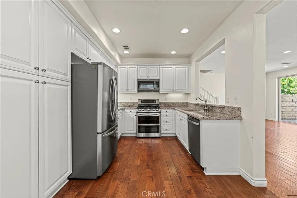 This beautiful Townhome features 3 bedrooms and 2.5 bathrooms across 1,710 square feet of living space. Built in 2006, the home offers a spacious, open concept floor plan with abundant natural light. Kitchen provides ample storage and it has an alcove window, stainless steel appliances and granite countertops. There is engineered wood flooring on the 1st floor and recessed lighting throughout. Property has been recently painted. Dining area is seamlessly connecting to the living room, which boasts a cozy fireplace. Cozy carpet on the 2nd floor. The Built-in desk could be the perfect office area for people working from home. The roomy primary bedroom includes a large walk-in closet and dual vanities. Additional amenities include a laundry room downstairs, ceiling fans in the bedrooms and living room, Ring Doorbell. The patio opens through the dining area offering outdoor relaxation after a long day. The property has an attached 2-car garage. Community features a brand new updated Swimming Pool with Cabanas, Spa, BBQ area, Clubhouse and a Playground. This Townhome is conveniently located near stores, restaurants, hiking trails and award winning schools within the SAUGUS School District. Skyline Plaza is in walking distance. No MELLO-ROOS and low HOA!! Come and take a look at your future home, this is a must see!