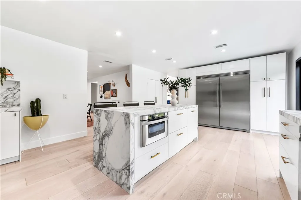 Perfectly positioned in the most coveted Seal Beach neighborhood, this modern Hill masterpiece reflects a refined coastal lifestyle. Step inside this stunning home where bold design meets relaxed living. Thoughtfully created for luxury and comfort, this residence blends clean lines, artistic details, and effortless indoor-outdoor flowjust minutes from the beach. A sleek charcoal exterior with board-and-batten detail, a dramatic entry and generous front patio sets the tone for the style within. Inside, soaring vaulted ceilings and wide-plank white oak floors create a gallery-like atmosphere, while curated statement pieces infuse the home with personality and warmth. The open-concept living space is anchored by dramatic volume and abundant natural light. The designer kitchen features professional-grade appliances, oversized porcelain waterfall island, custom cabinetry, and walk-in pantry, making the space as functional as it is beautiful. Perfect for entertaining, the space opens seamlessly to the back yard retreat. The first floor also features a large dining room, a pool room/den/guest bedroom, a full bathroom, and a laundry room with direct garage access. Upstairs, the primary suite offers a tranquil retreat with a spa-inspired ensuite bath, complete with dual-sink vanity, oversized multi-head shower, and soaking tub. The large walk-in closet offers endless possibilities for customization. The two additional oversized bedrooms share a jack-and-jill bathroom. These spaces maintain the homes consistent blend of modern sophistication and inviting comfort. Every finishfrom the