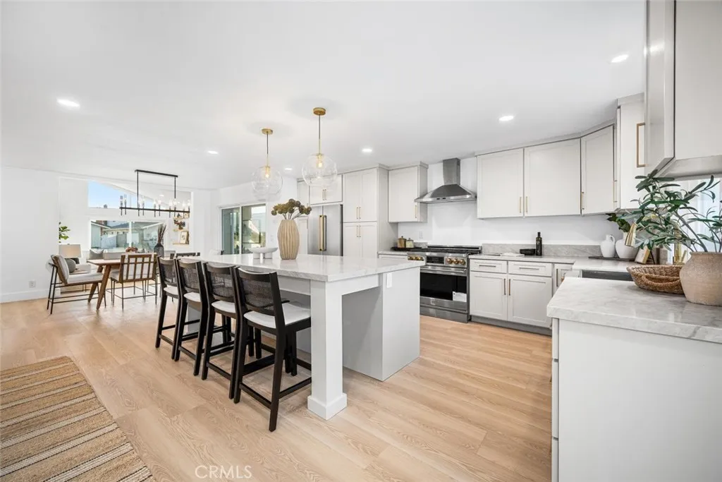 Welcome to this beautifully remodeled, single-story home located in the highly desirable College Park East community. This light-filled 4-bedroom, 2-bath residence has been thoughtfully updated throughout and offers an open, modern feel perfect for todays lifestyle. The stunning kitchen features custom cabinetry, quartz countertops, and premium Thor appliances, seamlessly flowing into the main living areas. New luxury laminate flooring runs throughout the home, complementing the fresh, contemporary design. Both bathrooms have been fully remodeled, with the primary bath showcasing elegant marble flooring. Enjoy newly landscaped front and back yards ideal for entertaining or relaxing. Centrally located within the tract and situated in the highly sought-after Los Alamitos School District, this turnkey home offers the perfect combination of style, comfort, and location.