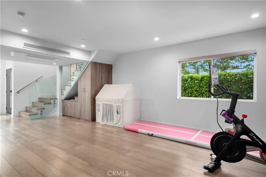 A stunning home designed to adapt to your needs. The main level is designed for gatherings, featuring a 44-foot entertainment area and expansive windows that let in warm natural light. An open dining area adds organic texture, with a white oak slat feature wall that pops beautifully against the pristine, European-inspired kitchen, which showcases sleek glass-paneled cabinetry, deep, soft-close drawers, a pull-out pantry, and an abundance of functional storage. The lower flex level is built into the home, so your space evolves with you and offers endless possibilities: a fourth bedroom with an en-suite bath, a home theater, a fitness room, an art studio, a game room, or a professional office, just to name a few. Upstairs, the primary suite is a serene retreat with a luxurious en-suite bath with soothing spa-like finishes, including a floating double vanity, a deep soaking tub, and gorgeous textured walls. The secondary bedrooms also feature their own en-suite baths and deep closet spaces with organizers. The garage wasn't left out of this thoughtfully designed home; a three-car layout includes EV-ready parking, two convenient entrances, and a full-view frosted-glass door that lets natural light glow through. Outside, manicured hedges frame the corner lot, completing the homes stunning curb appeal. Every aspect of this beautyinside and outdelivers an elevated, modern lifestyle defined by comfort, style, and functional living.