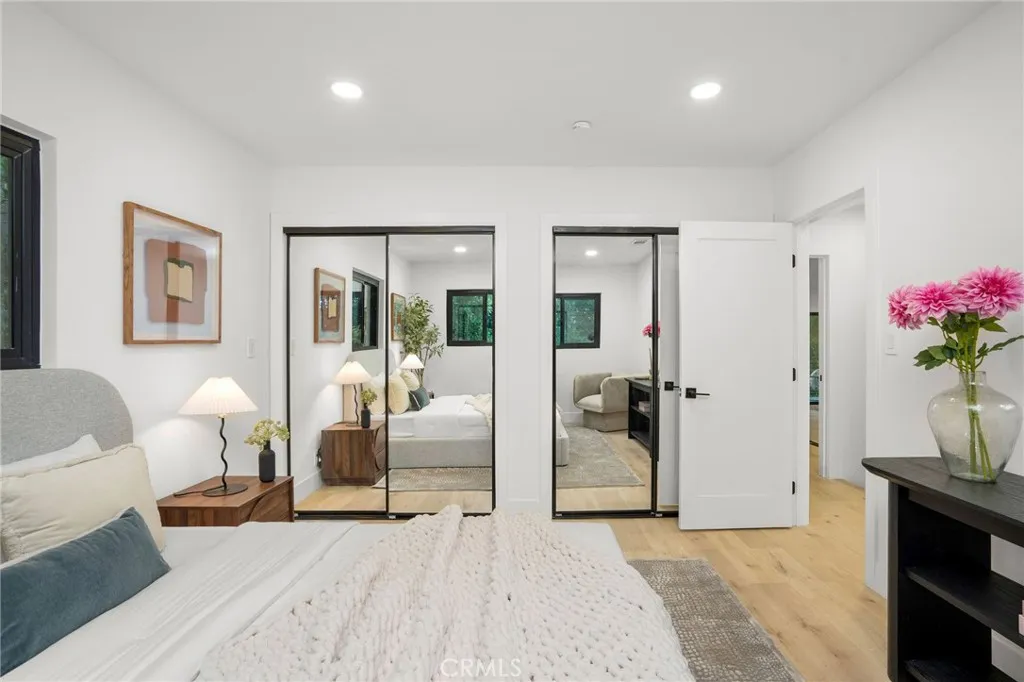 Perched high in the coveted hills of Sherman Oaks, this striking modern residence captures the perfect balance of design, privacy, and sophistication. Flooded with natural light from expansive windows and sliding glass doors, the home welcomes you with a warm, open ambiance the moment you step inside. The airy, open-concept floor plan seamlessly connects the kitchen, dining, and living areas to the outdoorscreating an effortless flow ideal for both daily living and hosting. At the heart of the home lies a designer kitchen showcasing sleek finishes, custom cabinetry, and a spacious peninsula that invites conversation and gathering. The luxurious primary suite offers a serene retreat with a stylish en-suite bathroom featuring a walk-in shower and elegant vanity, followed by generous closet space and a private oversized balconyperfect for morning coffee or sunset views. Two additional bedrooms provide comfort and versatility, ideal for family, guests, or a home office. Step outside to a thoughtfully designed backyard that extends the homes modern aesthetic, framed by manicured ficus and a refined seating area that seamlessly blends indoor and outdoor living. Additional highlights include a large two-car garage with epoxy flooring and an expansive driveway offering ample parking. Ideally located just minutes from Ventura Boulevards premier shops and restaurants, with easy access to the Westside, this home embodies a seamless blend of modern luxury, functionality, and serenity in one of Sherman Oaks most desirable hillside enclaves.