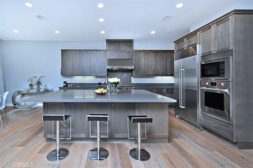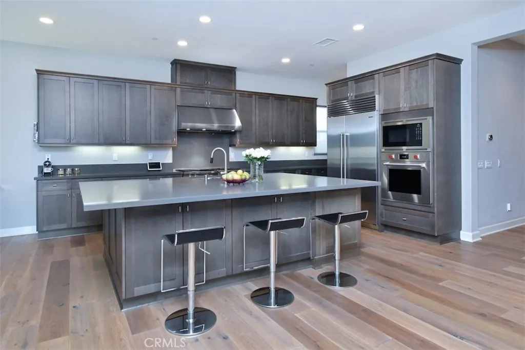 MAJOR PRICE DROP - Stunning Contemporary Home in Prime Sherman Oaks! Welcome to this gorgeous 4-bedroom modern masterpiece, perfectly situated on a serene, tree-lined street in a coveted Sherman Oaks neighborhood. Boasting impeccable curb appeal, this beautifully crafted home blends luxurious finishes with thoughtful design, ideal for todays modern family lifestyle. Step inside to a bright and airy open-concept layout featuring wide plank wood floors, recessed lighting, and designer touches throughout. The spacious great room with a sleek fireplace flows seamlessly into a charming private yard, perfect for indoor-outdoor living and entertaining. The heart of the home is the chefs dream kitchen, outfitted with European-style Maple cabinetry, Quartz countertops, a generous center island, a Sub-Zero refrigerator, top-of-the-line Wolf appliances, and a walk-in pantry. Downstairs, youll find a private guest bedroom with an en-suite bath and a stylish powder room. A custom wrought iron staircase leads to the upper level, where a versatile bonus room awaitsideal as a playroom, home office, or media space. The luxurious primary suite offers a tranquil retreat, featuring a spa-inspired bathroom with his-and-hers vanities, a soaking tub, separate showers, and a spacious walk-in closet. Each additional upstairs bedroom includes its own private en-suite bath, while the convenient upstairs laundry room is complete with a sink for added functionality. Additional highlights include paid off solar system, EV car charger, tankless water heater, dual-zone A/C, Nest System, Ring System. Baldw