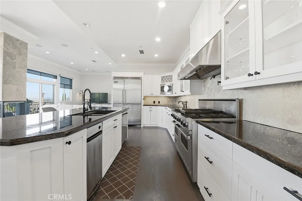 Back on market no fault of property or seller. Previously in escrow with strong interest. Now a great opportunity for a new buyer to secure this home. WOW is the only way to describe the first impression of this striking contemporary residence, perched high in the coveted Sherman Oaks Hills just south of Ventura Boulevard. A dramatic pivot entry door and soaring 24-foot ceilings set the tone, while expansive skyline, city, and mountain views pour into nearly every room. Thoughtfully designed for both luxury and ease, the home features an elevator servicing all levels and a light-filled open floor plan framed by floor-to-ceiling windows. Offering approximately 4,560 square feet, the home includes 5 bedrooms and 4.5 bathrooms, highlighted by an expansive primary suite with a double-sided fireplace, spa-style soaking tub with views, and dual-head steam shower. The chefs kitchen anchors the main living space with premium appliances and sleek finishes, ideal for entertaining or everyday living. Set on over half an acre, the property showcases manicured vineyard rows, fruit trees, multiple view terraces, and a stunning rooftop retreat that elevates the experience even further. The upper portion of the lot offers exceptional future potential, with ample space to build a pool, ADU, or explore lot reconfiguration or new construction opportunities (buyer to verify). A private, hillside setting provides a sense of security and tranquility, with minimal through traffic and a quiet residential feel. Additional highlights include gated parking for up to 12 cars, a garage with polished e