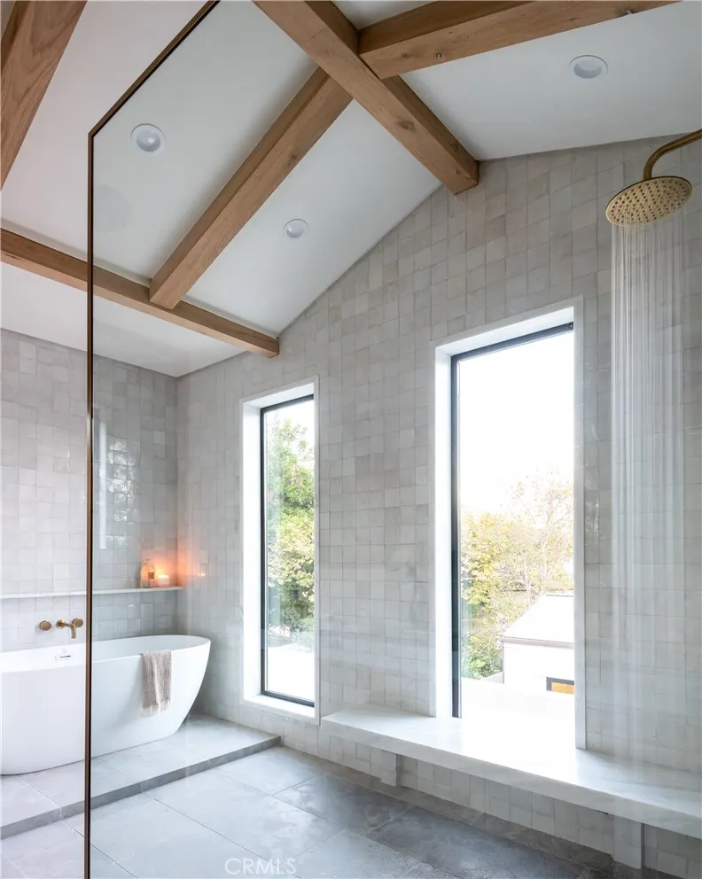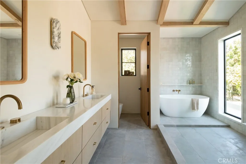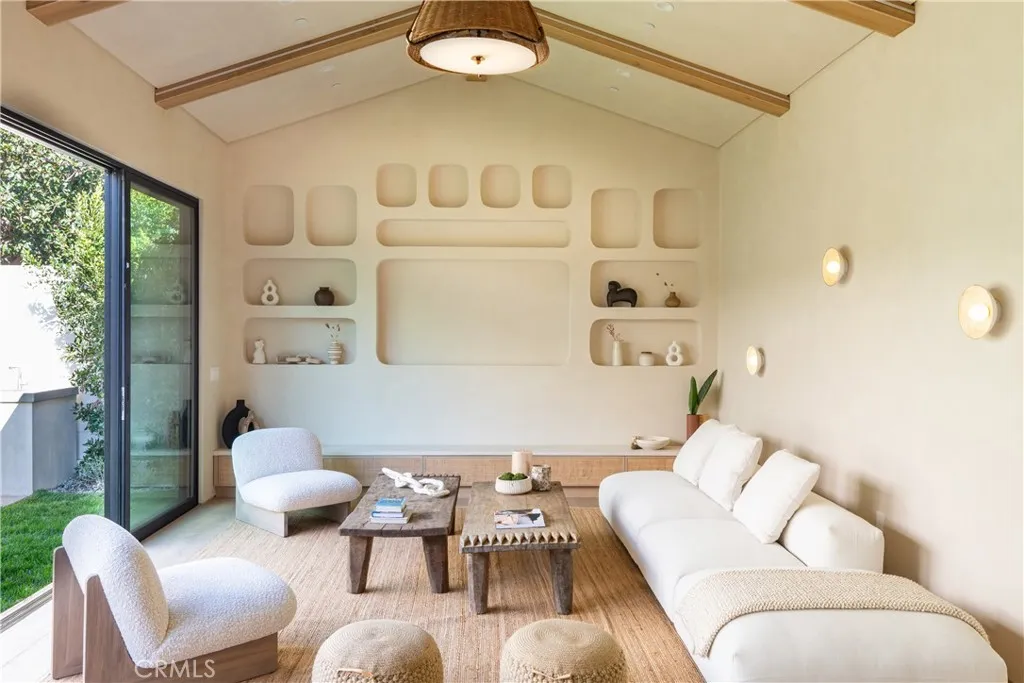 Introducing a newly built Deco Revival inspired modern estate in the heart of Sherman Oaks, ideally located South of the Boulevard and moments from top restaurants, shops, and cafs. Crafted with elevated materials and refined organic texture elements, this residence blends timeless Art Deco elegance with contemporary California living. The exterior features natural stone, brick, and smooth stucco, creating a striking architectural presence. Once inside, custom oak cabinetry, hand-crafted oak ceiling beams, and European natural stone countertops set a sophisticated tone. Upon entering, the main floor unfolds with a seamless flow through spacious, open concept living. Natural light fills the space where expansive living and dining areas flow seamlessly into the gourmet kitchen. The chefs kitchen is equipped with premium Thermador appliances, European stone countertops, bespoke fixtures, and a large island designed for cooking, gathering, and everyday living. Curved architectural lines and thoughtful lighting, elevate the ambiance with refined soft deco influence. A desirable first-floor ensuite bedroom provides flexibility for guests or a private office, while a spacious theater offers an ultimate cinematic experience. Upstairs, there are four additional ensuite bedrooms, including a luxurious primary suite with vaulted ceilings, custom walk-in closet, private balcony overlooking the outdoors and a spa-inspired bathroom featuring premium finishes and marble countertops. Thoughtfully designed for comfort and privacy, each bedroom enjoys its own beautifully finished ensuite bat