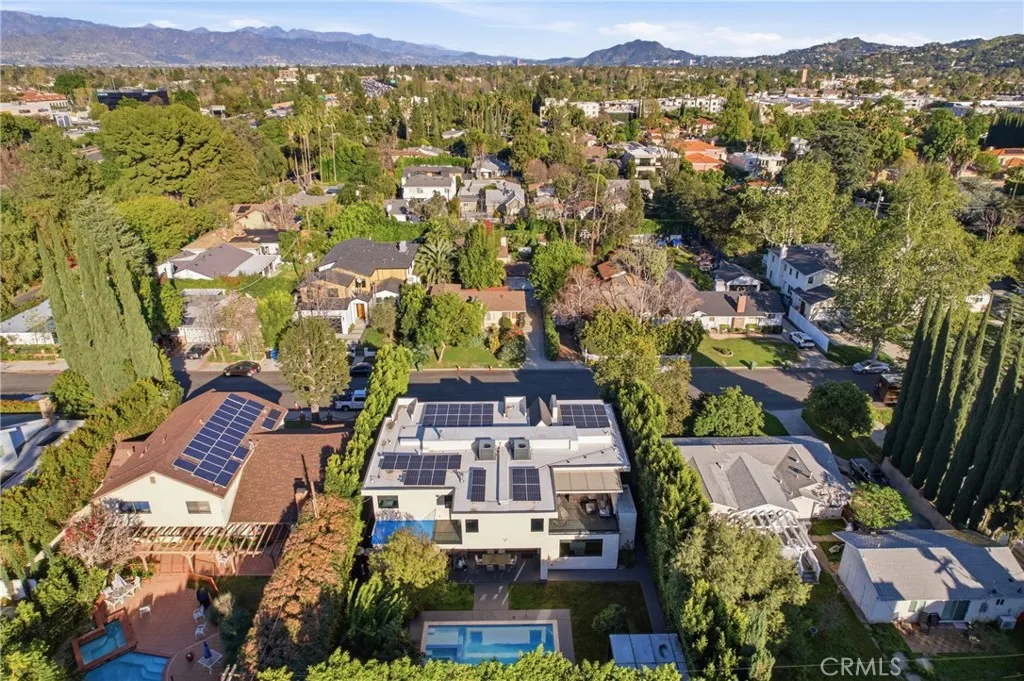 Welcome to a One-of-a-Kind Masterpiece in the Heart of Sherman Oaks. Situated on an impressive 10,580 sq.ft. lot, this exceptional residence offers 4,860 sq.ft. of beautifully designed living space with 6 bedrooms and 5.5 bathrooms. Built in 2019 with outstanding craftsmanship and meticulous attention to detail, the home features a seamless open-concept floor plan ideal for both everyday living and elegant entertaining. As you step inside, you are welcomed by soaring ceilings, a grand designer chandelier, and wide-plank oak flooring that flows throughout the home. Expansive windows fill the space with natural light and offer beautiful views of the resort-style backyard. The formal living room flows effortlessly into the dining area, creating a sophisticated space for hosting and gatherings. At the heart of the home is the chefs gourmet kitchen, featuring top-of-the-line appliances, sleek quartz countertops, and a massive center island perfect for cooking and entertaining. Custom cabinetry provides ample storage, while a cleverly designed hidden walk-in pantry maintains the kitchens clean and elegant design. Adjacent to the kitchen is the spacious family room with a fireplace, creating a warm and inviting atmosphere. Beneath the staircase, a custom-designed wine cellar serves as a striking architectural feature, making a bold statement of luxury and lifestyle. The main level includes an en-suite bedroom ideal for guests or extended family, along with an additional flexible bedroom perfect for an office, media room, or gym, and a stylish hotel-inspired powder room. Upstairs,
