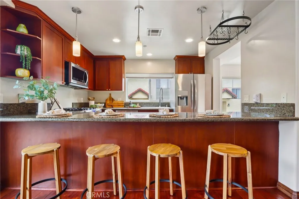 XL Townhome in Sierra Madre. With 3 Beds & 2.5 Baths,Dining Room,Living Room,Breakfast Bar & 2 Additional Flex Spaces for an office,gym,craft room, party room,it's an exceptional value. Just moments to Downtown & Park.LOW HOA only $350! Insurance is easily obtainable & affordable. Insurance co's have determined it's OUTSIDE the danger zone. Feels just like a single family home! In the heart of the charming community of Sierra Madre. You'll find everything you need for entertaining, comfort and a bit of luxury in this spacious home. You're greeted by a cozy front porch with garden. Make this area your own while you watch the world go by. There is also a large, enclosed patio off the living room with new Trex decking and deck with views to the mountains off the kitchen and den. With nearly 1900 sq ft, you'll have plenty of space for your family & guests. This home has been lovingly upgraded with dual QuietCool whole house fans that cool throughout without even needing to turn on your A/C, high-efficiency LED can-lighting with Luetron Maestro dimmer switches, remodeled primary bathroom with curbless shower, halo 2.0 inline water conditioner, tankless water heater, high-efficiency composite entry door, custom window treatments including wooden shutters, blackout cellular shades, & custom roller shades, custom built-in furniture includes bookshelves & bench in living room, closets & drawers in primary and guest bedrooms, shoe rack, organizer in mud room, extra kitchen cabinets, and laundry station upstairs. You'll be pleased to notice that the garage level entry has a very spaci