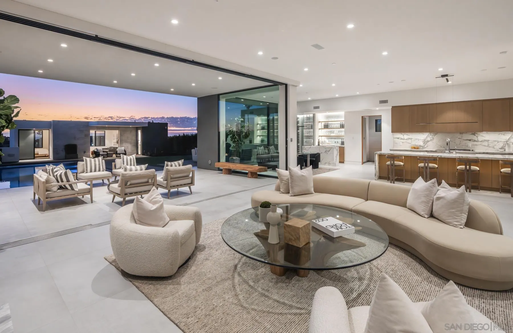 Welcome to 521 - 523 S Rios, stunning newly built 2023 ocean-view home with $2 Million of owner upgrades in 2024. This home is just steps from Cedros Design District in the heart of coastal Solana Beach; offering amazing world class restaurants and nightlife just 3 minutes away by foot. This home is a short walk to the Del Mar Fairgrounds & Racetrack and the stunning beaches and dog beaches of Del Mar & Solana Beach. Designed by EOS Architecture and developed by RMCI Group this contemporary compound is a total of 6,731 square feet with a luxurious 7 bedroom/10 bath main house (6,206 sq. Ft., including a detached guesthouse/ADU with 1 bedroom/1 bathroom (525 sq. ft.). This home features sophisticated architectural details, including a teak pivot door, soaring 11-foot ceiling enhanced by Kuzco and Fifth Avenue light fixtures, floating glass stairs, stone columns and walls, French oak-gray washed wood floors and a Lutron lighting system designed to create the perfect ambiance. Awake sliding glass doors seamlessly connect the indoor living spaces to the outdoor oasis complete with a 40-foot pool, 10x10 spa, an outdoor kitchen, dining and bar seating, a fire pit, acid-etched concrete patios and multiple lounge areas - creating an atmosphere reminiscent of a high-end luxury resort. The gourmet kitchen is equipped with top-of-the-line appliances including a Sub-Zero refrigerator, second Sub Zero refrigerator for the butlers pantry and wine fridge, Gaggenau 6-burner induction gas cooktop, Wolf microwave drawer, two Miele dishwashers and a spacious Butler’s pantry.