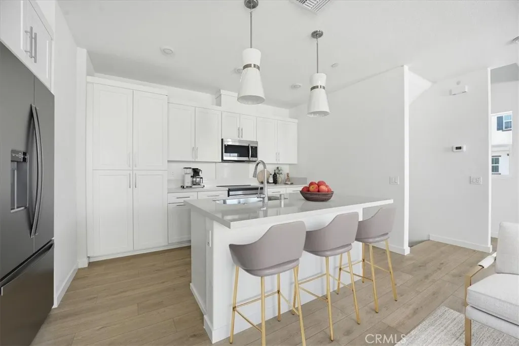 NEW CONSTRUCTION MOVE-IN FOR THE HOLIDAYS! This stylish 3-story end-unit townhouse offers modern finishes and comfortable family living. The spacious, inviting ground-level entry includes a convenient coat closet. The second floor features an open-concept layout with a contemporary kitchen complete with a center island, sink, dishwasher, and bar seating, all opening to the great roomperfect for entertaining and family gatherings. A powder room with modern finishes adds convenience for guests. Upstairs on the third floor, you'll find a secondary bedroom with a full bathroom, a side-by-side laundry closet, and a private primary suite enhanced by built-in cabinetry and a modern, spa-like ensuite bath with linen storage. Located within a beautifully appointed gated community featuring desirable neighborhood amenities including a sparkling pool and clubhouse. Enjoy modern comfort, convenience, and turnkey living! PROFESSIONAL PICTURES HAVE BEEN VIRTUALLY STAGED