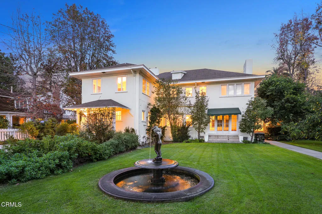 Gracefully set on one of South Pasadena's most prestigious streets, this early-1900s Colonial Revival estate is a rare offering rich in character, scale, and timeless elegance. A sprawling front lawn creates a memorable approach, leading to an expansive covered front porch--perfect for quiet mornings or welcoming guests. Inside, a grand foyer opens to a spacious living room centered around a classic fireplace, while the formal dining room sets the stage for elegant gatherings. A light-filled sunroom, kitchen, laundry room, den, and a fifth bedroom complete the main level. Throughout the first floor, original hardwood floors, oversized windows, and soaring ceilings showcase the home's historic craftsmanship and enduring charm. Upstairs, the generous primary suite is accompanied by three additional well-proportioned bedrooms, offering ample space for family, guests, or home offices. Full size attic and basement offer the potential for additional storage or living space. The lushly landscaped backyard is a private retreat, featuring a beautiful garden, sparkling fountain, pergola, and a detached two-car garage with 3/4 bath--presenting excellent potential for an ADU. This remarkable property offers a rare opportunity to restore and reimagine a stunning historic residence, transforming it into your own 'home sweet home.' Ideally located near parks, restaurants, shops, award winning blue-ribbon schools and all that South Pasadena has to offer, this estate blends classic elegance with exceptional potential in a truly coveted setting. Showings are by appointment. Easy to show. Cal