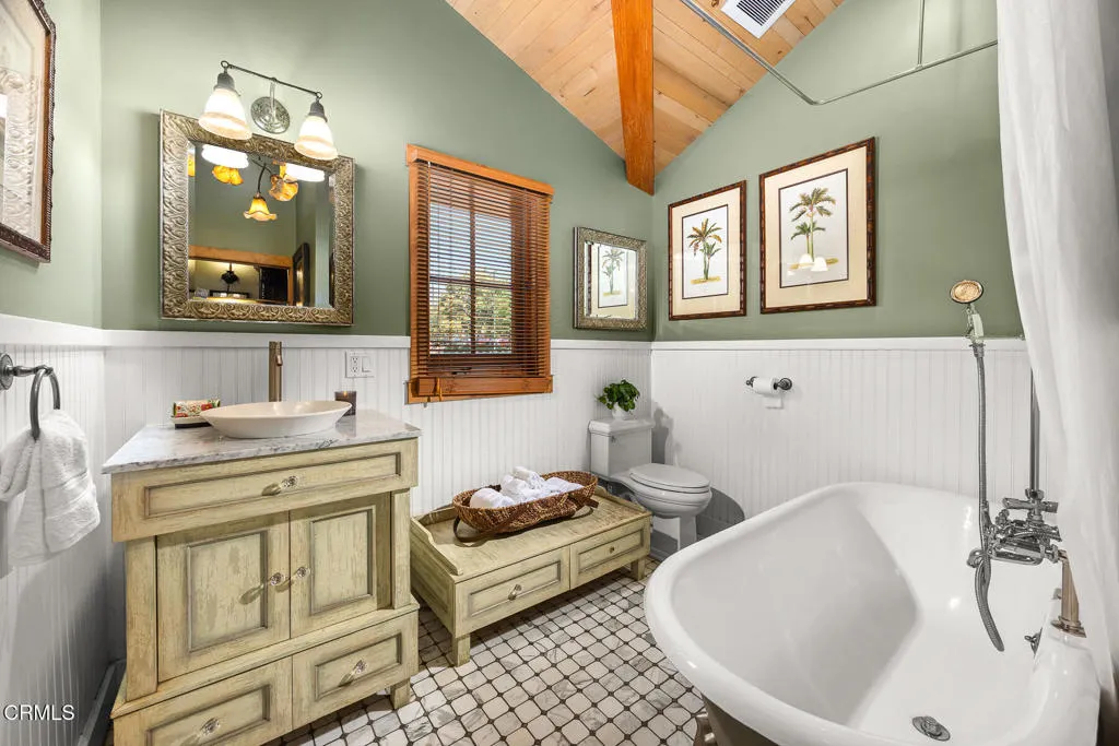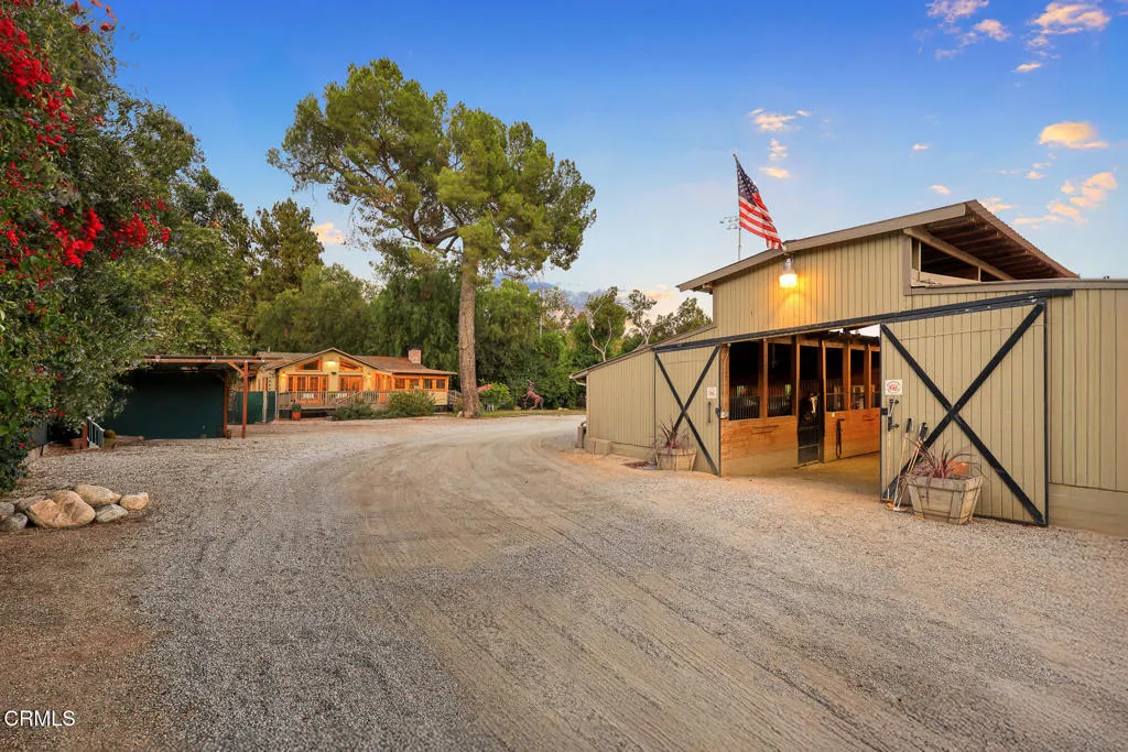 South Pasadena Equestrian Estate|Nearly 1.5 Acres of Premier Horse Property. A rare offering, this gated equestrian estate is a harmonious blend of architectural elegance and exceptional horse facilities, a private sanctuary designed for both refined living and an active equestrian lifestyle. Tucked behind mature trees and manicured hedges, the property offers highly desired seclusion with two gated driveways, multiple outdoor living spaces, and direct access to the scenic Arroyo Seco trails. Whether you're a professional equestrian, avid rider, or simply seeking an unmatched indoor-outdoor lifestyle, this estate delivers it all. At the front of the property is a beautifully designed 2-bed, 2-bath architectural ranch home featuring hardwood floors, vaulted ceilings, and a seamless connection to the outdoors. The spacious primary suite is a true retreat, complete with a mosaic-tiled fireplace, tranquil bath with dual vanities, a custom closet, and an attached office with direct access to both the front deck and side yard. The kitchen is equipped with a farmhouse sink, built-in appliances, a stunning La Cornue range, and a breakfast bar -- all with views of the San Pascual Stables training arena. Adjacent is the cozy dining area with French doors leading to a wraparound deck, perfect for al fresco dining or morning coffee. The inviting living room features a second fireplace with dual built-in glass-faced cabinets and deck access. Equestrian Facilities: World-Class Amenities at Home. Purposefully built for the serious equestrian, the property boasts extensive horse facilities