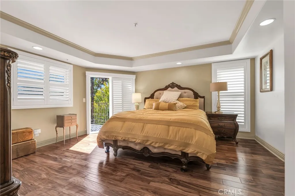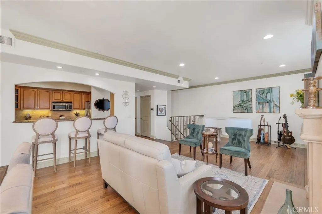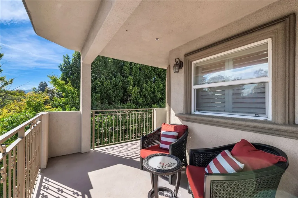 Luxury top floor south facing two story corner unit condo in the coveted Colfax Meadows neighborhood of Studio City, just steps from Tujunga Village. Located in Carpenter Charter Elementary and Walter Reed Middle School districts. This 2,140sqft townhouse style corner unit with 3 bedrooms & 2.5 bathrooms is located in The Dalton, an exclusive boutique building with only eight units. Open gourmet kitchen features Frigidaire Professional Series stainless steel appliances and granite countertops with breakfast bar. Hardwood flooring, crown molding and recessed lighting throughout, two balconies, two car side by side parking, and separate storage locker, this unit has it all! Entering you are greeted by a light filled well appointed living room and dining room with stone mantel fireplace. The separate tv/family room leads out to a corner south facing balcony, perfect for an evening BBQ. The private lower level includes all bedrooms with a primary suite that features an ensuite bathroom with dual vanity, walk-in shower, and separate jet tub, along with a spacious walk-in custom closet and its own private balcony. Other features include: Upgraded in-unit washer/dryer, custom California shutters, hardwired ADT security system, 2 car side by side parking, and separate storage locker. HOA features: Guest Parking, Bldg. EQ Ins., new roof 2022, touchscreen video call box, and security cameras throughout building, outdoor common area. Just steps to the amazing shops and restaurants of charming Tujunga Village including Aroma Cafe, Kreation Juice Bar, and Vitellos Restaurant.