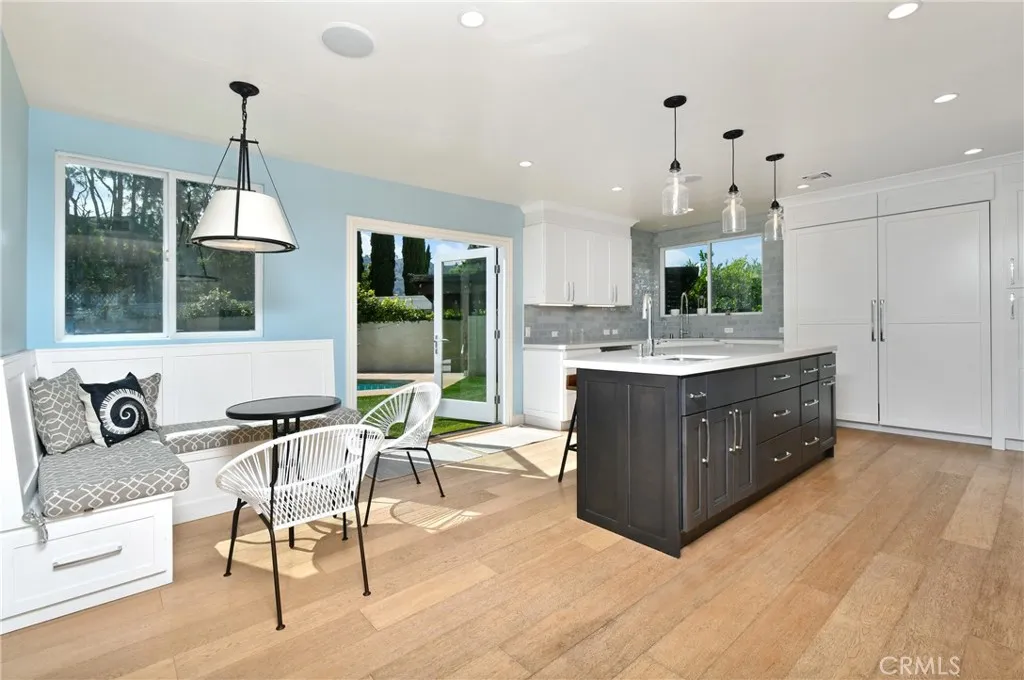 Beautiful Mid-Century Modern high in the hills of Studio City, this midcentury-inspired architectural has been remodeled with designer touches throughout. Capturing fantastic views of Studio City and the hillsides beyond, the 5-bedroom retreat features light, bright interiors, a formal dining room and a living room with soaring cathedral ceilings and a wood-burning fireplace. The remodeled chefs kitchen boasts a center island, built-in dining nook, Quartz counters, tile backsplash, shaker cabinets, a walk-in pantry and Thermador/Miele appliances. Sliding doors open to the entertainers backyard with a pool, alfresco dining area, manicured gardens and terraced patios. Bedrooms and baths include the primary suite with dual closets and a double rain shower. Features include an office, leased solar and a sound system, located in the Carpenter school district, moments from the Fryman Canyon Trails and shops and restaurants on Ventura Blvd. Home needs minor repairs and a refresh.