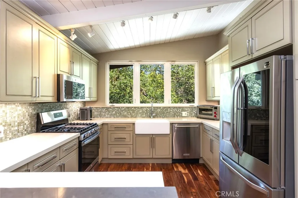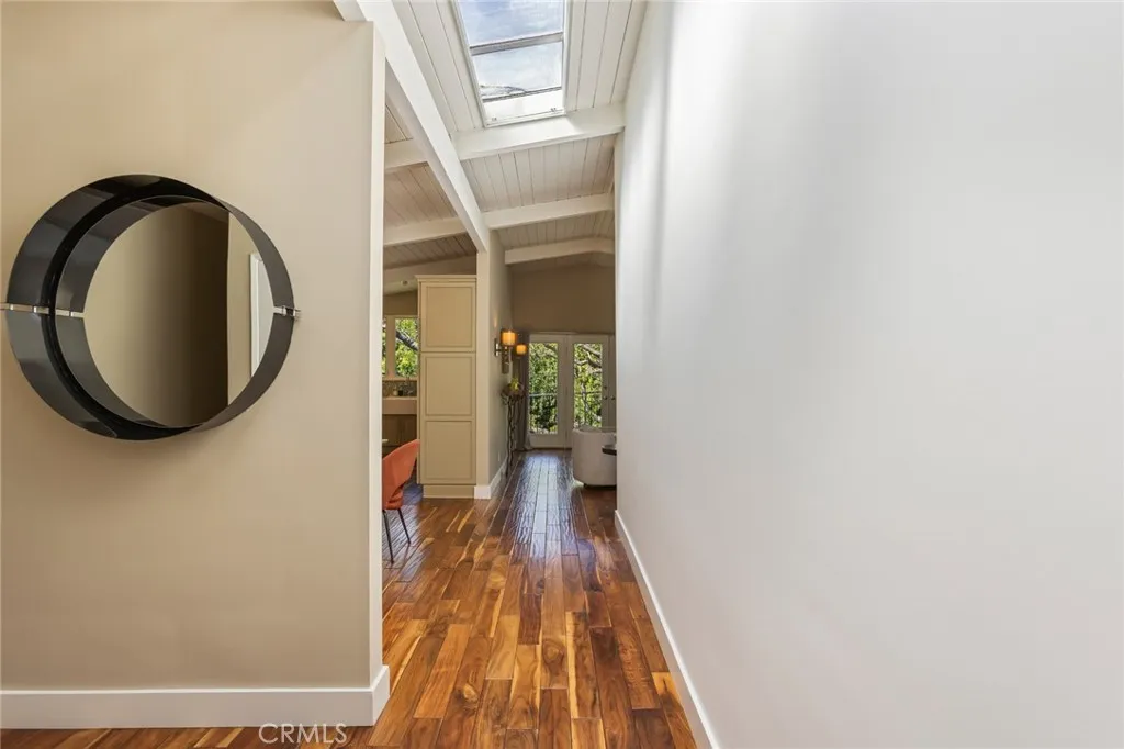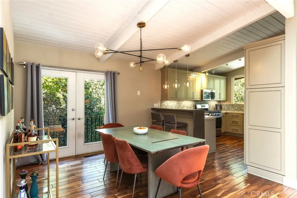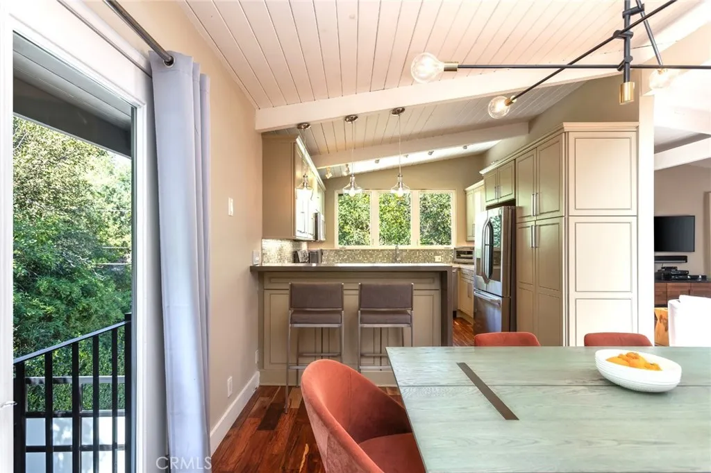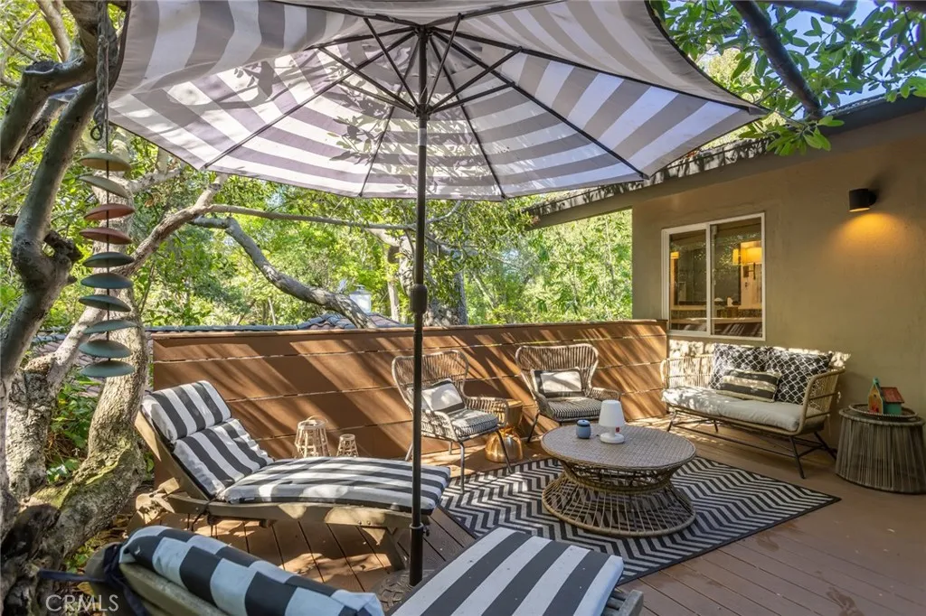 Rare opportunity to own an incredible mid-century modern home in the hills of Studio City. First time on the market in 24 years, this home has been meticulously maintained. Located in Carpenter Charter Elementary School. Minutes from Fryman hiking trails, the Studio City Sunday Farmer's Market and Studio City's famous Shushi Row!! This home is situated above the street and is incredibly private with tree-top views from almost every room. Enter this exquisitely appointed home through its formal entry. The formal dining room and living room have French doors that let in natural light and fresh air. The kitchen has been remodeled and has a breakfast bar, stainless steel appliances, farmhouse sink and Ceasarstone countertops and treetop views from the kitchen window. The living room has vaulted ceilings, a corner fireplace and access to the yard and patio. The primary bedroom is situated on the second floor, has a walk-in closet, private bathroom, treetop views and large private patio. The two secondary bedrooms are located on the first floor and share a bathroom that has been beautifully remodeled, maintaining the aesthetic midcentury appeal of this home. Both bedrooms have French doors and open to the yard. Separate laundry room, two car garage electric driveway gate, security gate for visitors and plenty of off-street parking are just some of the features that make this home unique.