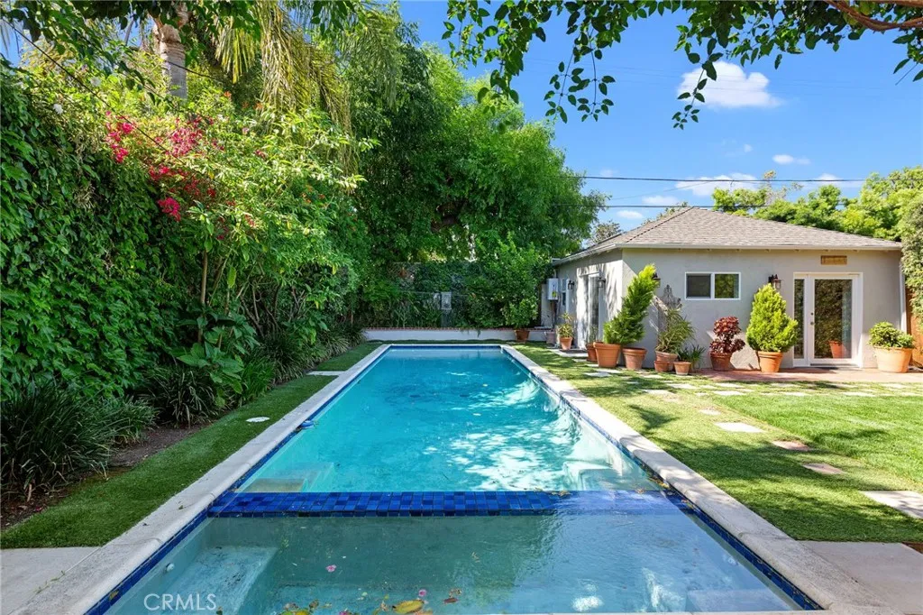 Price improvement.!!Work from Home!!Newly built detached guest house,ADU,fully equipped /studio.South of Ventura Blvd in the "Silver triangle" area of Studio City at the foothills of Fryman Cyn hiking trails and Tree People. Walk a few steps to your own brand new, fully equipped studio work space with separate entrance, full kitchen, bath, large closet and stackable washer/dryer. Designed for use as an OFFICE, granny apartment or gym. The main house features 4 bd, master with en-suite bath; and bedroom/bonus, rm. with half bath downstairs; 2 bd. and shared full bath upstairs, French drs. leading to an exquisite backyard oasis including a large, UV protection, covered brick patio looking out over the pool, spa, and lawn. Updated kit. with new stainless steel appl., including washer and dryer, marble counters. There are crown mouldings and wood flrs. throughout the home. The brand new permitted Studio is light, featuring Frch.Drs.high ceilings, full bath, and kith., lg. closet with a view to the pool and its own covered patio. Walk to Sunday Farmer's market,CBS and Radford studios.On a beautiful lined street with 4,000,000++ homes.Top-ranked neighborhood school: Just steps away from the highly rated Carpenter Community Charter (GreatSchools 10/10)a local gem for elementary education. Honors and enrichment options: Gifted students can thrive at Walter Reed Middle School within walking distance, featuring a prestigious Individualized Honors Program. Public high school with breadth of opportunities: North Hollywood Highless than 2 miles awayoffers robust academics, arts, and lea