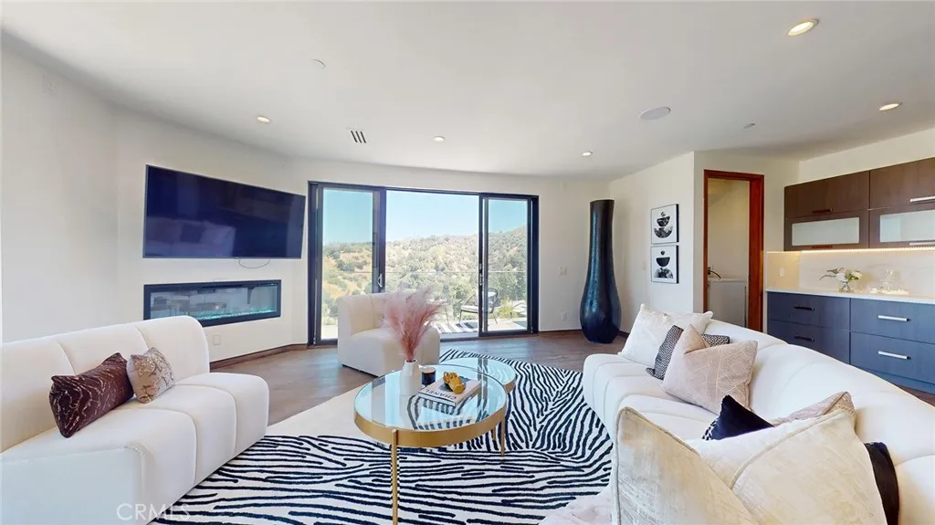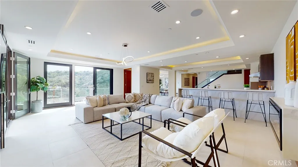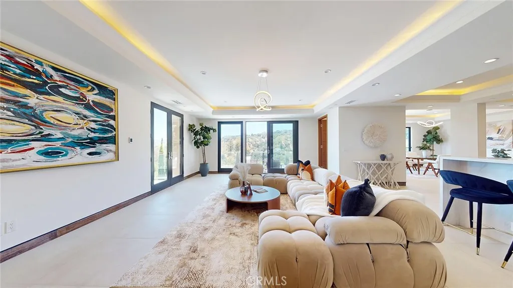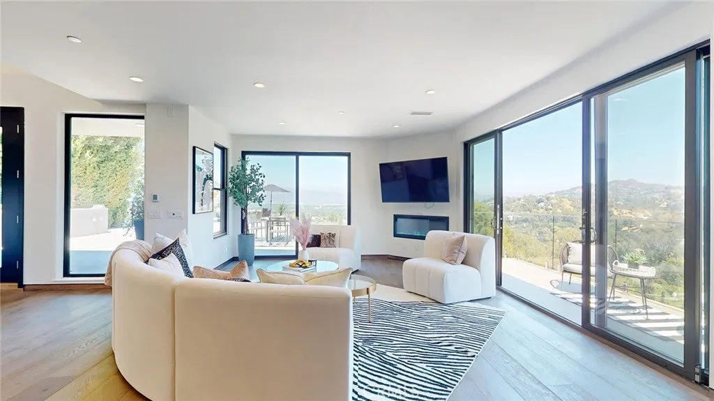 Nestled in the coveted Silver Triangle of Studio City, this stunning gated estate offers unparalleled luxury living with premium finishes throughout. A grand two-story entry sets the tone for this 5-bedroom, 5-bathroom home with two additional powder rooms and multiple balconies showcasing breathtaking canyon and city views. Designed for both comfort and elegance, the open-concept layout features a chefs kitchen equipped with a Sub-Zero refrigerator and a generous island ideal for entertaining. Sophisticated smart home features include a Control4 system, security cameras, and a 2-car garage with ample guest parking. The expansive 2,000 sq. ft. patio is perfect for outdoor gatherings or quiet relaxation. Outdoor enthusiasts will appreciate the proximity to Fryman Canyon trails, just moments away. Dont miss the opportunity to own this extraordinary property offering serenity, privacy, and luxurious living in one of Studio Citys most sought-after neighborhoods. Pool images are renderings only, intended to illustrate potential design ideas. No permits have been issued. Buyers are advised to conduct their own due diligence regarding feasibility and installation costs. Please note: Pool images are artists renderings provided for illustrative purposes only