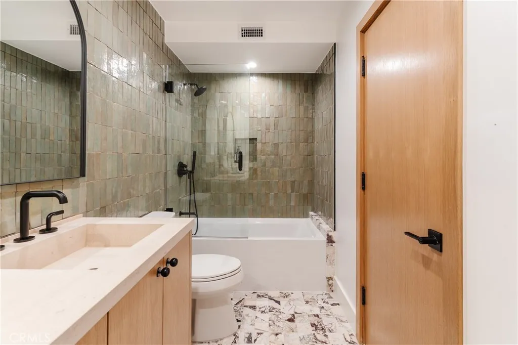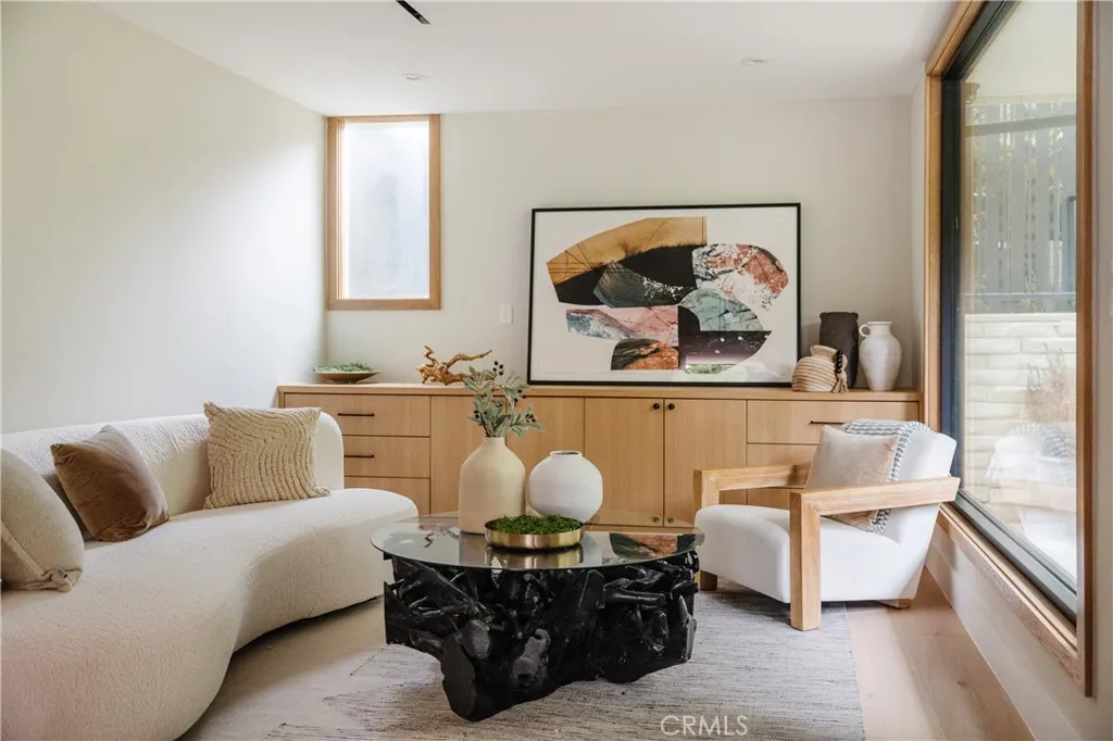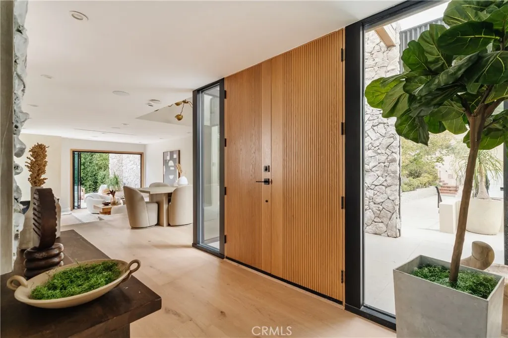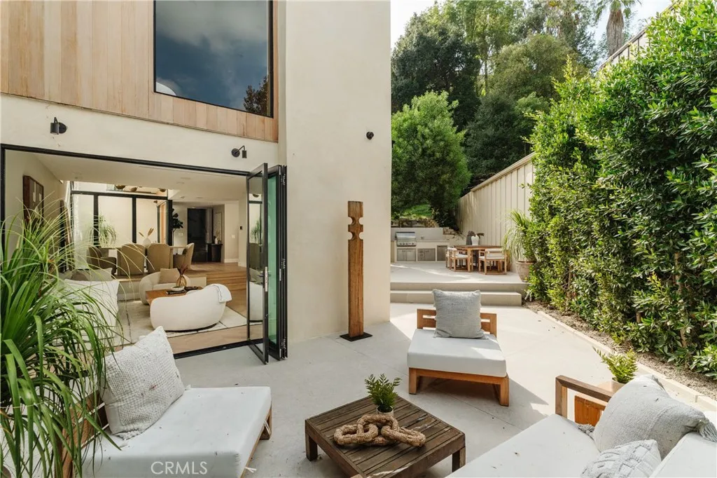 This strikingly reimagined mid-century residence, privately set south of the Boulevard in coveted Studio City. Every inch of this 3-bedroom, 2.5-bath home with an additional office reflects refined craftsmanship, natural warmth, and modern design. The exterior immediately captivates with rich cedar cladding and hand-laid stonework, setting the tone for the sophisticated interiors within. Inside, airy open spaces unfold across herringbone-patterned wood floors, framed by custom millwork and natural textures that evoke a sense of calm and connection. The heart of the home is the seamless living, dining, and kitchen area bright, inviting, and designed for effortless entertaining. Floor-to-ceiling glass doors extend the space outward to a private patio with a built-in grill, perfect for gathering or relaxing under the California sun. The chefs kitchen impresses with white oak cabinetry, Viola Monet Calacatta marble, paneled appliances, and sleek fixtures blending organic materials with contemporary elegance. A powder room, laundry area, and attached two-car garage with EV charger complete the main level. Upstairs, the tranquil primary suite is a modern sanctuary with expansive windows, custom closets, and a spa-inspired bath featuring a soaking tub, walk-in shower, and dual vanities. Two additional bedrooms, a full bath, and a flexible den or office provide comfort and versatility for family or guests. Tucked in one of Studio Citys most desirable pockets, this home offers easy access to hiking trails, Mulholland Drive, Beverly Hills, and The Shops at Sportsmens Lodge with Er