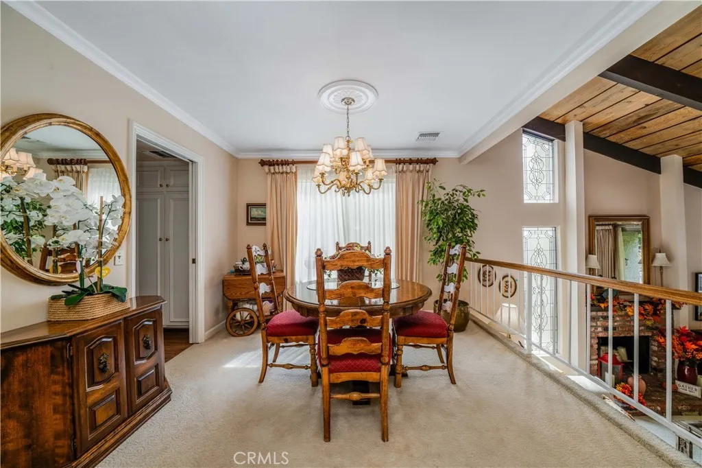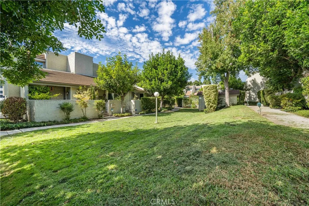Welcome to this spacious tri-level, light-filled End Unit townhome, beautifully located within the highly sought-after Studio Village complex with a large greenbelt pool and spa very near the unit. A gated and walled, private brick garden patio serves as the entrance to a split-level floor plan, opening to a living room with soaring cathedral-beamed ceilings, a floor-to-ceiling south-facing window featuring gorgeous frosted stained-glass insets, a natural brick fireplace and hearth, and sliding doors leading to the private patio for BBQing and entertaining. The large dining area visible from the living room includes a wet bar with storage cabinets and connects to a bright galley kitchen featuring stainless steel appliances, custom tile countertops and backsplash, and a charming breakfast area connected to a family room/den (possible 3rd bedroom) with the addition of a wall, and an adjacent 3/4 guest bath and storage closet. Upstairs, two generously sized en-suite bedrooms feature large, screened picture windows, bathrooms, and walk-in closets. The primary bedroom features a fantastic window seat and an extra-large walk-in closet. A private direct-access two-car garage has two walls of built-in storage cabinets and a laundry area. The HOA includes earthquake insurance, on-site management, security patrol, landscape maintenance, cable TV/internet, water, and access to incredible amenities, including six heated pools, five spas, tennis & pickleball courts, and more. Located in the coveted Carpenter Community Charter School district and near Tujunga Village, Woodbridge Park, Ve