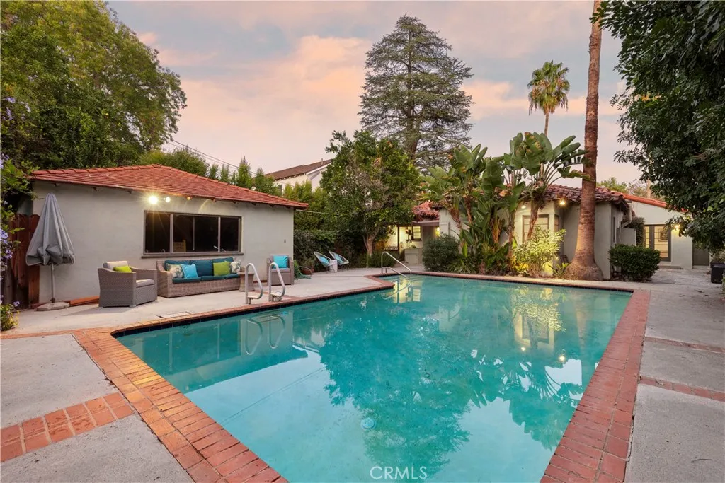 Attention developers, RTI opportunity situated on a picturesque, tree-lined street in the heart of Studio City. Ready to issue plans for an approximately 6,270 sq ft home with 6 bedrooms, 8 bathrooms, a basement and detached ADU. This charming 1930s Spanish home has had much of its original character preserved. Enjoy timeless details that include tray ceilings, large bay windows and quaint built-in features throughout. A spacious living room welcomes you into the home, highlighted by a stunning stone fireplace and French doors that open to a side courtyard. The remodeled kitchen is equipped with stainless steel appliances and an inviting breakfast nook. Two generously sized bedrooms are separated by a full bathroom, with the larger bedroom offering a walk-in closet. Toward the rear of the home, a comfortable family room opens through French doors to a covered patio, creating an effortless indoor-outdoor flow. Surrounded by mature landscaping, the private backyard retreat feels like your own hidden oasis, complete with a sparkling pool. Additional highlights include a formal dining room, laundry hookups, a security system and detached two car garage. Ideally located within an excellent school district and nearby Ventura Boulevards vibrant restaurants, cafs and boutiques, as well as The Shops at Sportsmens Lodge.
