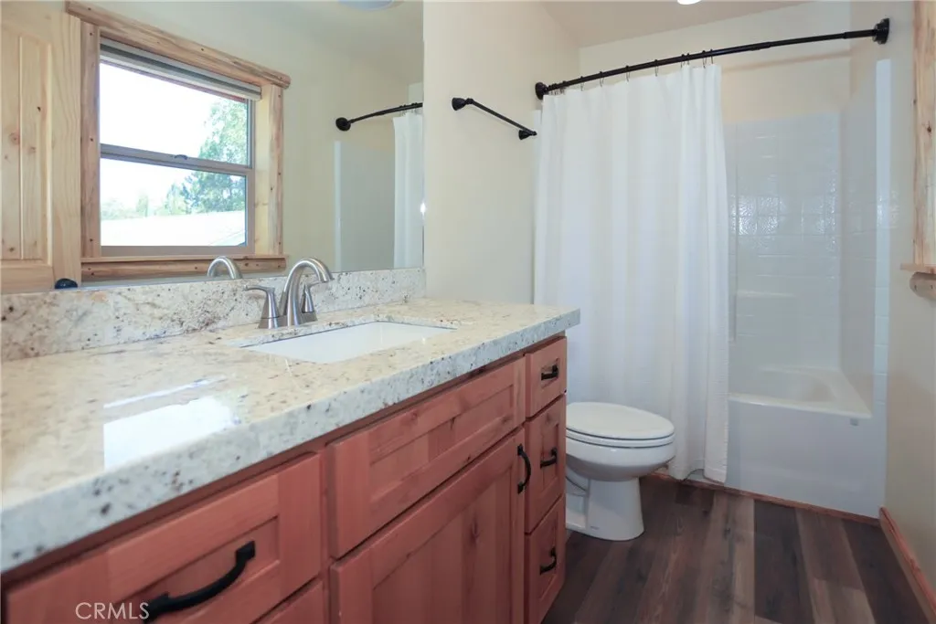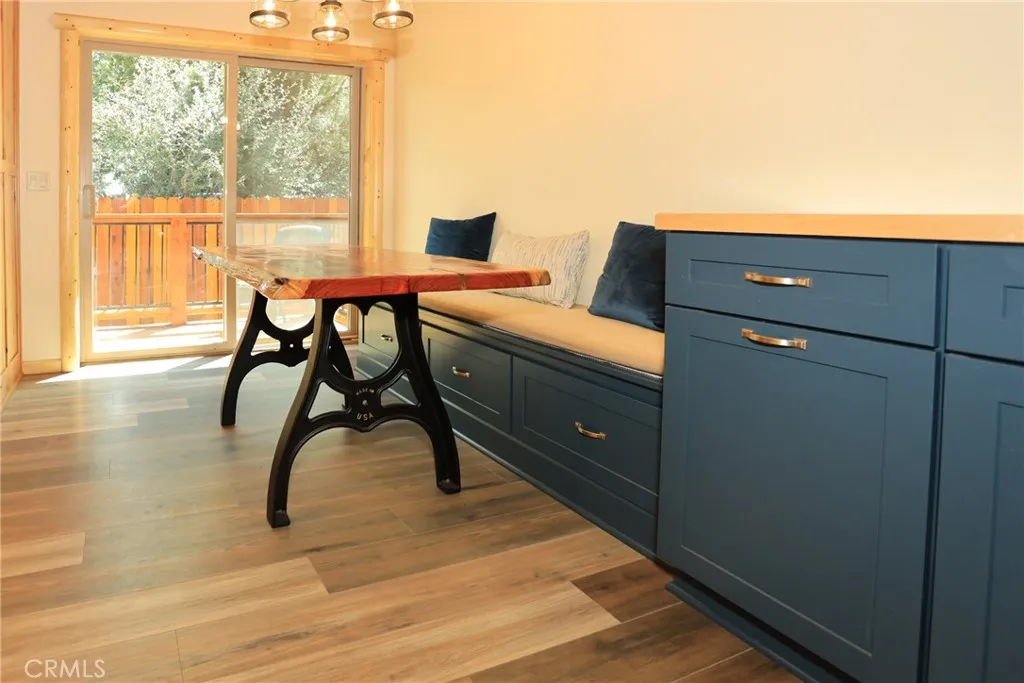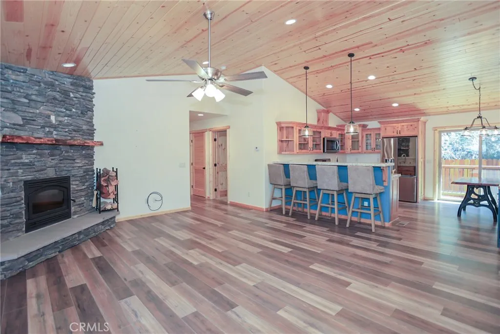 Welcome to this beautifully crafted 3-bedroom, 2-bath home nestled in the serene Big Bear Pine Wood subdivision. Blending rustic charm with contemporary features, this home offers an inviting open-concept layout perfect for both everyday living and entertaining. The spacious kitchen is a chefs dream, featuring stainless steel appliances, custom cabinetry, and sleek granite countertops. Gather around the artisan-built redwood dining table with custom seating perfect for cozy dinners or hosting friends and family. Both bathrooms are generously sized and include Bluetooth-enabled exhaust fans, bringing modern convenience to your daily routine. Enjoy the practicality of a 2-car attached garage, offering ample parking and storage. A 6-foot redwood fence surrounds the property, ensuring privacy and peace of mind. Outside, a thoughtfully designed mix of hardscape and landscaping creates a functional 360-degree walk-around ideal for enjoying the fresh mountain air in every season. This home truly offers the best of Big Bear living. Dont miss your chance to own this unique blend of mountain serenity and modern comfort!