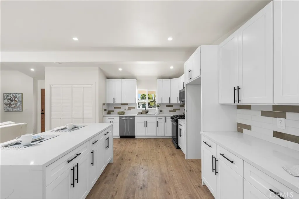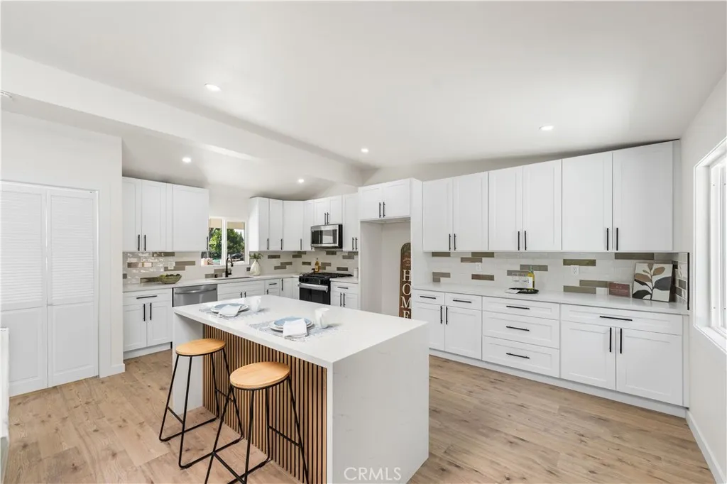 Beautifully updated home offers an open floor plan with spacious bedrooms & fully remodeled bathrooms. Enjoy laminate flooring throughout, brand new dual-pane windows, a new roof, and fresh landscaping that enhances curb appeal. Gourmet kitchen is the centerpiece of the home, featuring a huge waterfall island, sleek new stainless steel appliances, and ample cabinet space. Attached 2-car garage provides convenience, while the newly landscaped yard offers a perfect space for outdoor enjoyment. A true turnkey property ready for its next owner!
