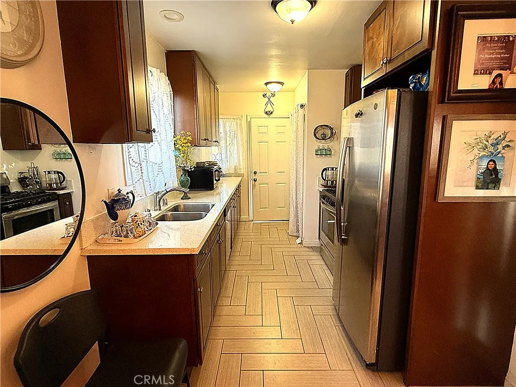Remodeled corner house with 3 bedrooms and a 2-car detached garage with alley access. Plenty of kitchen cabinets with quartz counter tops in kitchen and in bathroom. Laminate flooring in living room and bedrooms. Tile flooring on dining room and kitchen. The house has surrounding built in stereo system in living room, crown molding throughout, double paned windows, copper plumbing, central air, central heat, recessed lighting, and possible RV access.