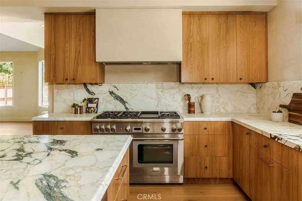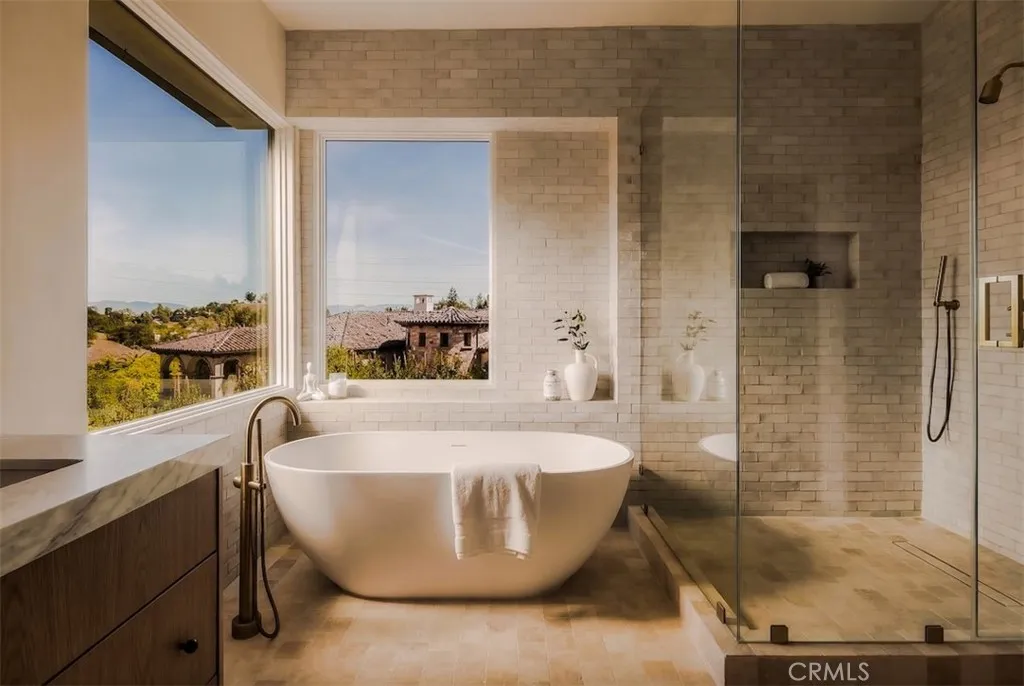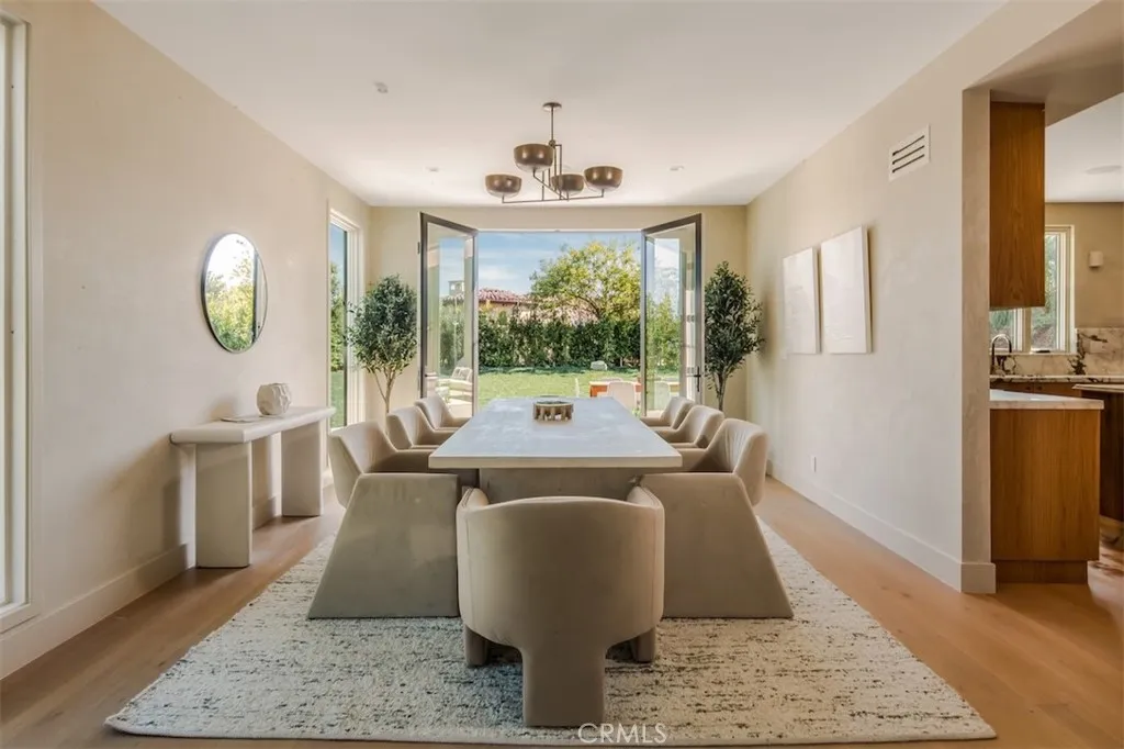 Welcome to 4016 San Remo Way, a statement estate nestled behind the exclusive 24-Hour Guard-Gated Silverhawk Ridge. Set on a commanding 17,743 sqft lot with sweeping views of the valley and Santa Monica Mountains, this newly reimagined residence is a masterclass in modern California luxury. A striking arrival sets the tone, where a custom oak front door and wood-clad garage hint at the level of craftsmanship and intention carried throughout the home. Inside, dramatic two-story vaulted ceilings and a sun-drenched open floor plan create an immediate sense of scale, volume, and effortless sophistication. Every detail has been carefully curated. Plastered interior walls, solid oak flooring, custom cabinetry, and bespoke lighting come together to create a warm yet refined palette. Expansive Fleetwood sliding doors and Lincoln windows dissolve the boundary between indoors and out, elevating the homes connection to its natural surroundings. Integrated speakers throughout the home allow music to flow seamlessly from room to room, enhancing the overall ambiance and lifestyle experience. The living spaces are both grand and inviting, offering a formal living room, an elegant dining area, and a stunning family room - all seamlessly connected to a showpiece kitchen with marble countertops and premium finishes, designed for everyday living and elevated entertaining. The primary suite is a true retreat, privately positioned to capture breathtaking views across the valley and into the Santa Monica Mountains. A private balcony extends the space outdoors, while a generous walk-in closet and