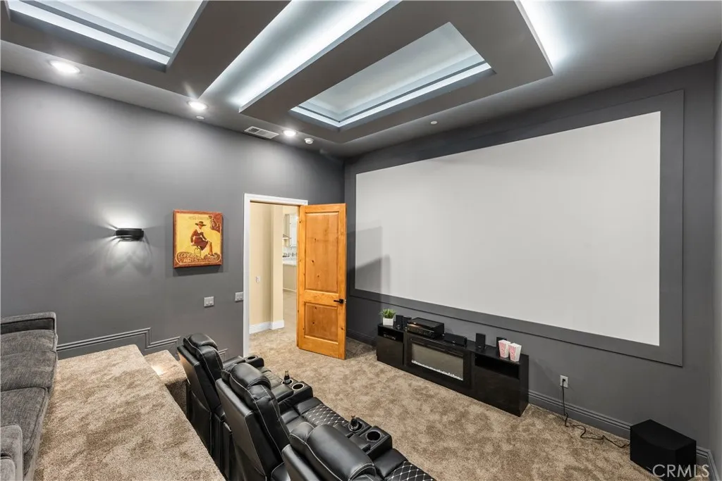 Perched high above Cross Creek Golf Course in the prestigious De Luz community, this extraordinary single-level estate offers the ultimate in luxury, privacy, and panoramic views. Situated on 10 pristine acres with a long private gated drive, this residence combines refined architecture with resort-style amenities. Inside, the home boasts six bedrooms and six-and-a-half bathrooms, with every bedroom featuring its own en-suite bath for unparalleled comfort and privacy. The main suite is a true retreat, offering two oversized walk-in closets and spa-inspired finishes. Designed for both elegance and functionality, the home is filled with 12-foot ceilings throughout, with select areas soaring to 16 feet, creating a sense of grandeur and openness. At the heart of the home lies the chefs kitchen, featuring custom cabinetry, double pantries, oversized center island, and premium finishes including soft-close drawers and shelving. Flowing seamlessly from the kitchen, the family rooms oversized windows frame breathtaking hillside and golf course views, filling the space with natural light. Entertainment abounds with a state-of-the-art theater room offering elevated stadium seating and an oversized projection screen, as well as a spacious exercise room for wellness at home. Outdoors, the property transforms into a private resort with a stunning infinity-edge pool, expansive covered patios, and outdoor entertaining areas surrounded by custom hand-laid pavers. From sunrise to sunset, enjoy sweeping views of the surrounding valleys, mountains, and the rolling greens below. Additional hig