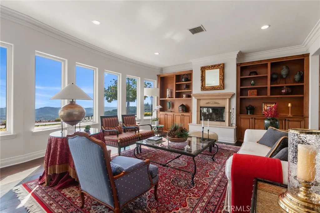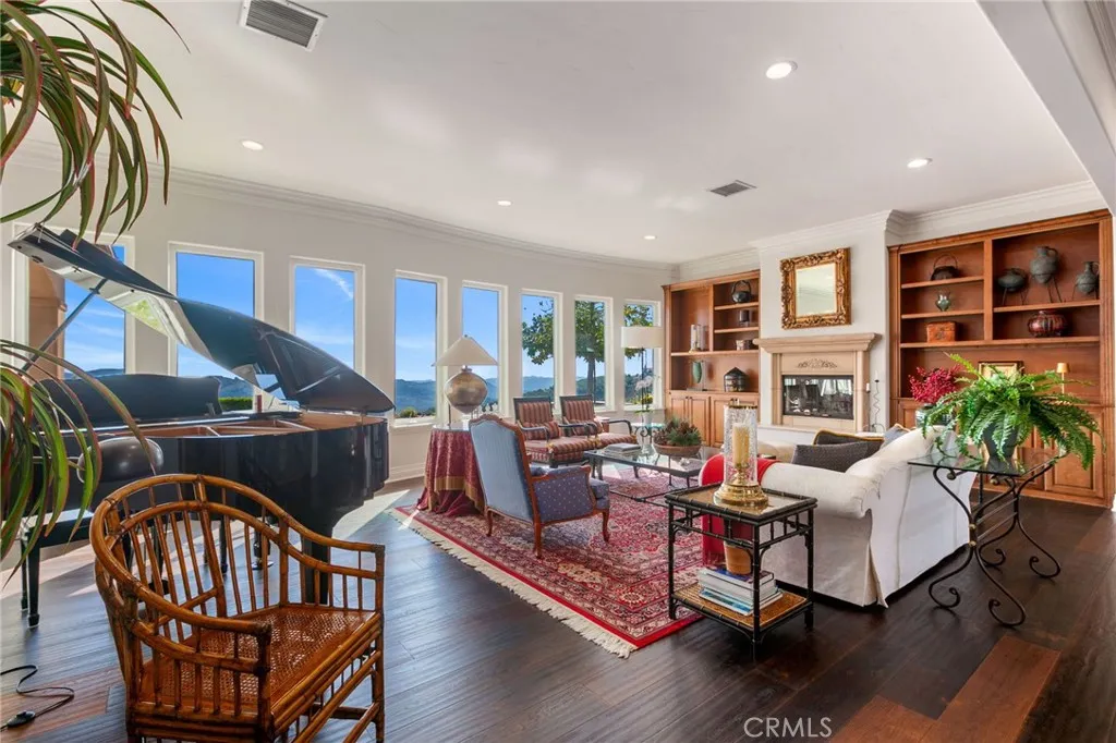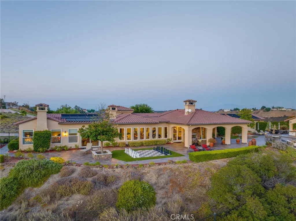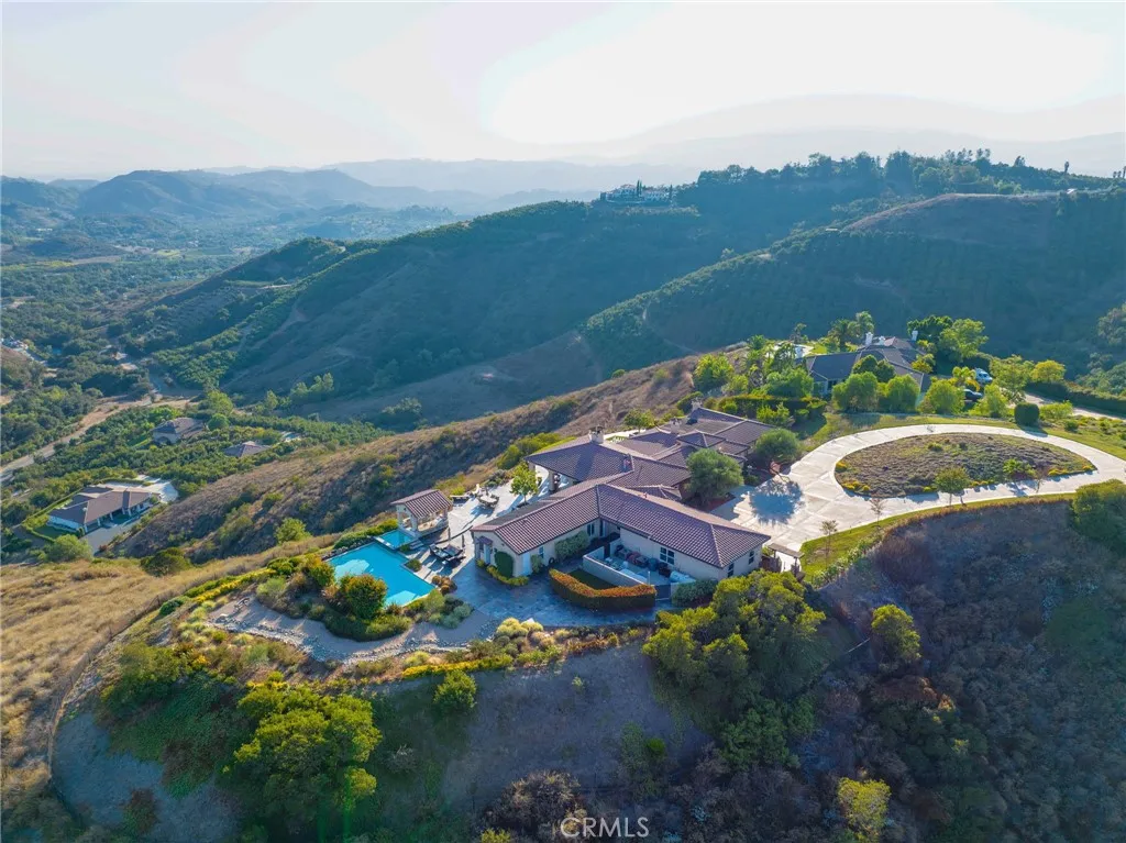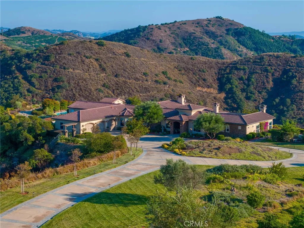 Breathtaking Panoramic Picturesque Views of Surrounding Hills and Valleys, Tranquility and Privacy. Elegant and Timeless De Luz Residence Impeccably Maintained and Beautifully Curated. Located Just Minutes from Historic Old Town Temecula (EST. 1859) and Temecula Wine Country. Stunning Drive Through Del Luz Roads with Majestic Oak Trees and Orchards, Adding Charm and Almost Magical Sense. On a Clear Day You Can Catch a Glimpse of Ocean View before heading Down Large Private Circular Driveway, and if you look left, during the Winter and Spring You Might see the Snow of San Bernardino National Forest. Impressive and Inviting Curb Appeal. Welcoming Front Porch, Lead Glass Double Door and Cathedral Ceiling Entry. Living Room with Curved Wall Enhancing Stunning Views. Gleaming Oil Rubbed Oak Flooring Throughout, Open Floor Plan Flooded with Natural Light. Formal Dining Room Adjacent to Gourmet Kitchen that Includes Oversized Center Island, Butler's Pantry, Wine Cellar, Walk-In Pantry and Spacious Breakfast Nook. Kitchen Opens to Incredible Family Room with Remarkable Beams, Fireplace and Two Sets of French Doors Leading to Covered Patio. The Primary Suite Includes Fireplace, Two Oversized Walk-In Closets and Large Retreat/Library that can be easily turned into a Fifth Bedroom, Nursery or Gym. Adjacent to the Primary Suite is also Spacious Office with Two Built-In Desks. The Left Wing of this Extraordinary Home Comprises Three En-Suite Bedrooms, All Offering Truly Magnificent Views. Resort Style Backyard Includes Several Patios, Swimming Pool, Spa, BBQ Island, Horseshoe Pit, Mega