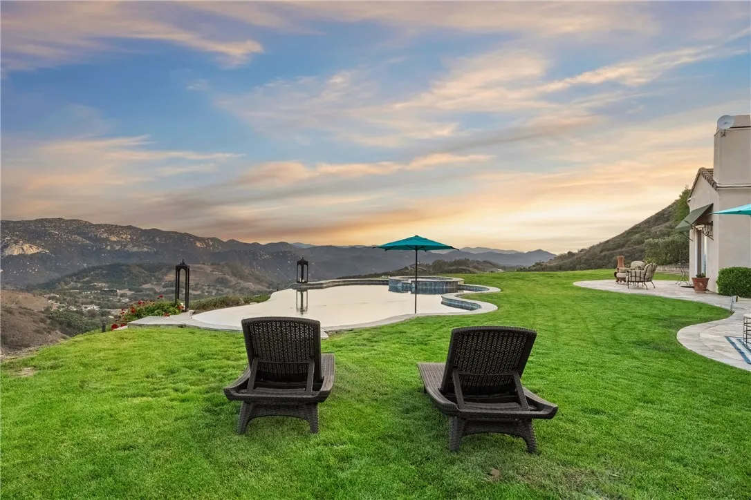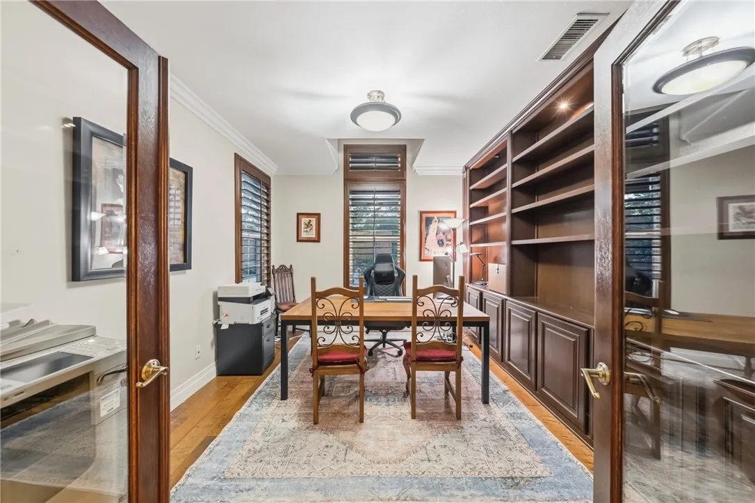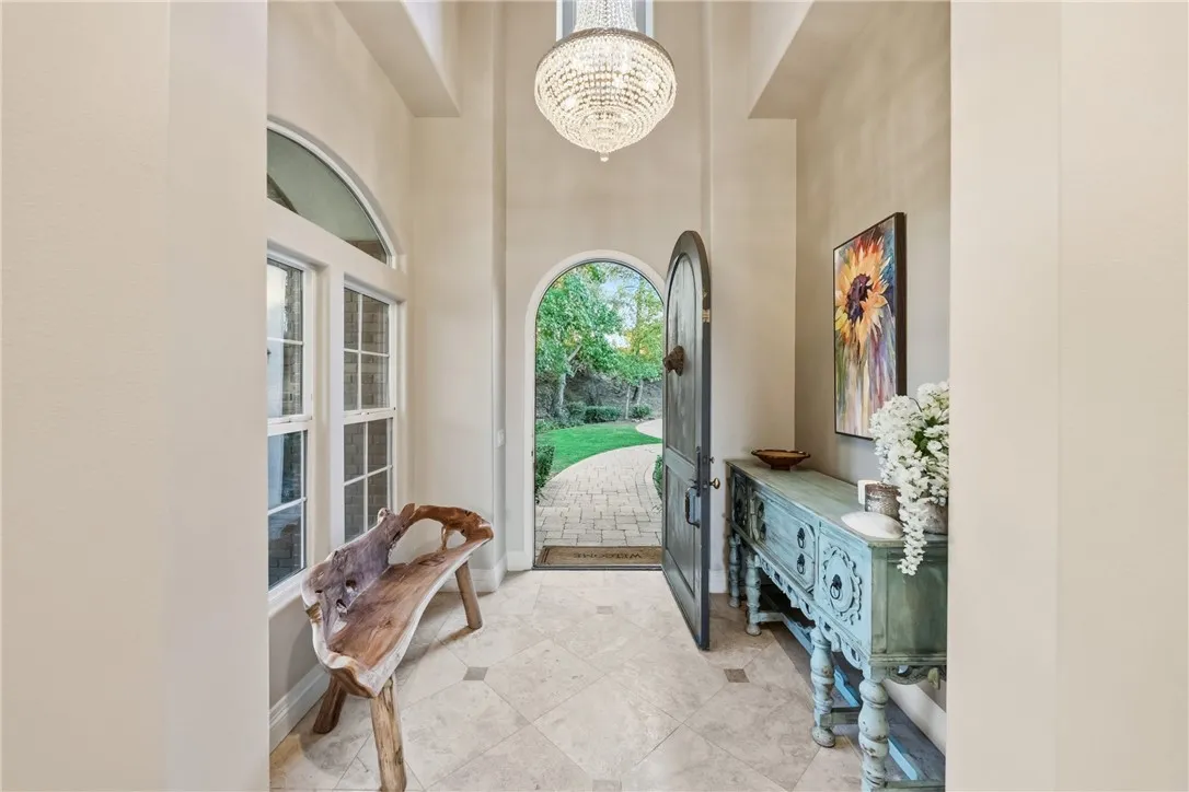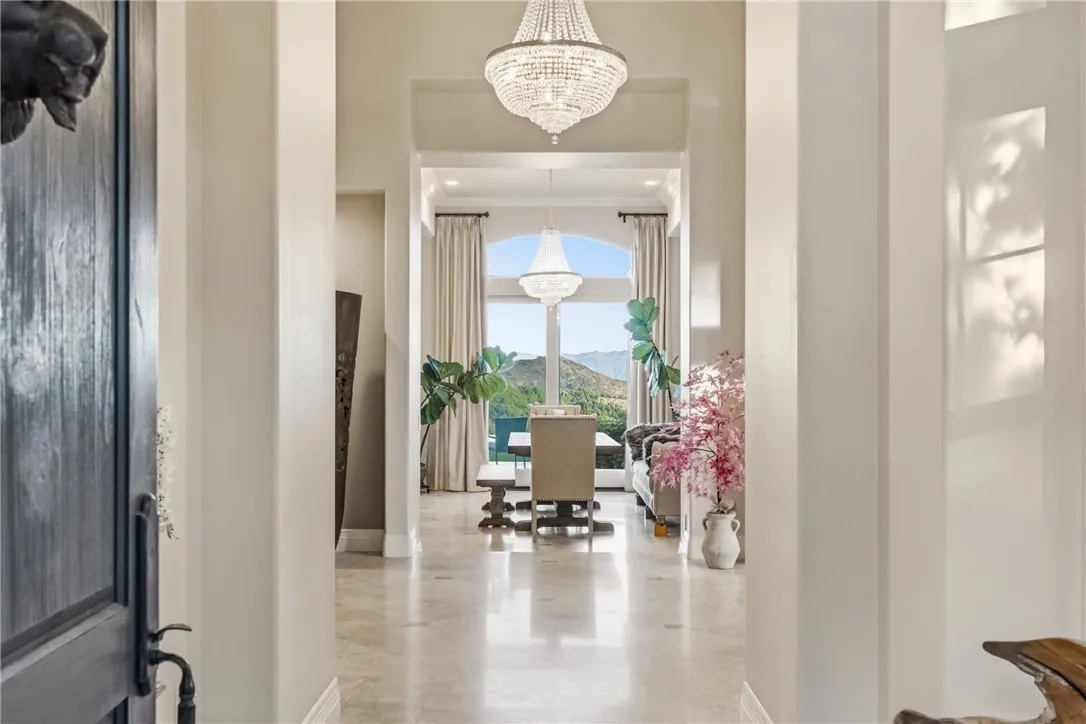 Beyond a private gated entrance lies this exceptional, Single Level, French Country Estate offering 4 Bedrooms, 3.5 Bathrooms, 3844 Sq Ft, (2) 2-Car Garages and a Salt Water Infinity Edge Pool. It's Located at the end of a cul-de-sac on one of De Luzs most prestigious streets & set on approx 5.7 Acres of beautifully landscaped grounds, with over 150Ft of towering Italian Cypress. Enter into an elegant foyer illuminated by cascading chandeliers, soaring vaulted ceilings, travertine floors, crown molding, and coved architectural details that set the tone for timeless sophistication. This thoughtfully designed Estate features Formal Living & Dining Rooms, an Executive Office, Gourmet Kitchen, Informal Dining & Family Rooms, all blending classic elegance with modern comfort. The Kitchen is the heart of the home featuring a center island, dark brown triple-milled cabinetry with soft-close drawers, granite countertops, & convenient pull-out shelving. The space is equipped with stainless steel appliances, including a six-burner Viking cooktop, overhead range, double ovens, & a walk-in pantry that offers ample storage for all your culinary essentials. The Kitchen opens to an Informal Dining area and Family Room, ideal for everyday living. The primary suite occupies the south wing of the home, serving as a private retreat complete with a fireplace, direct access outdoors, dual walk-in closets, dual sinks, a vanity, walk-in shower, a private water closet & a luxurious soaking tub with a chandelier above. From every room, expansive windows draw your gaze outward, inviting you to exper