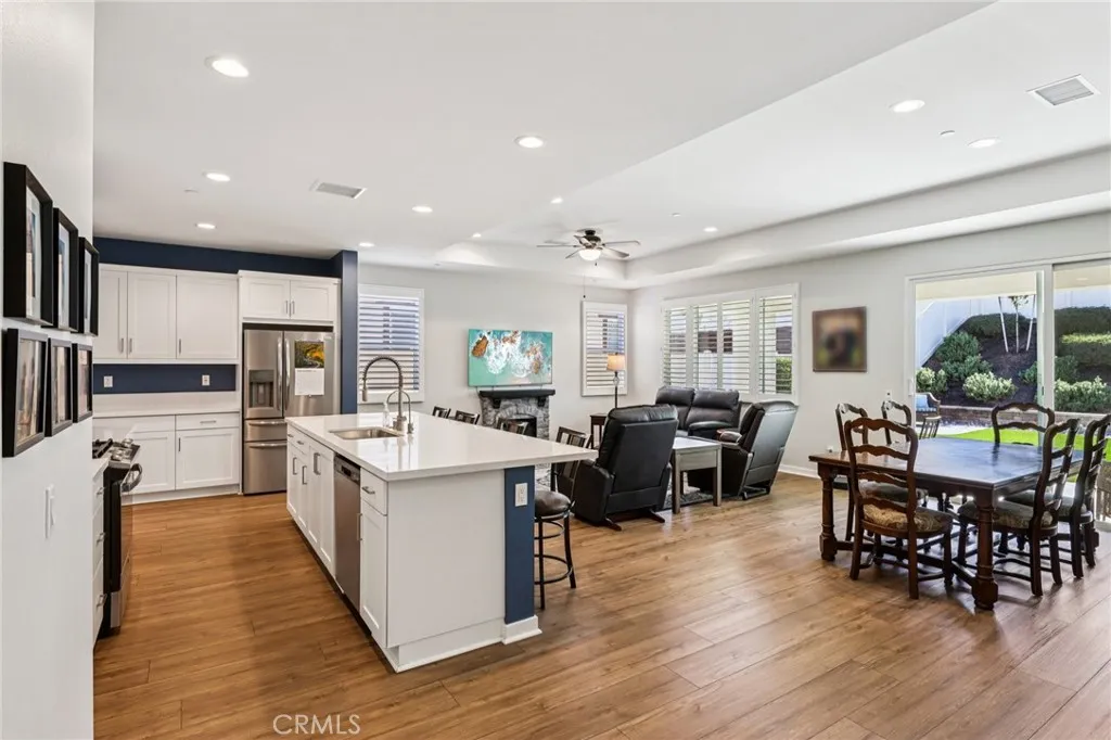 ESPLANADE 55+, LUXURY, OWNED SOLAR, PRIVATE, GATED COMMUNITY, TURNKEY, UPGRADED. Experience elevated 55+ living in this beautifully upgraded Arise Plan 2, combining modern design, energy efficiency, and resort-style comfort. The home offers 3 bedrooms, 2.5 baths, and an open-concept layout with sound-proof Pecan luxury vinyl plank flooring and plantation shutters throughout. The chefs kitchen showcases a large quartz island, premium stainless appliances, and abundant storage - ideal for entertaining or casual gatherings that flow seamlessly into the great room and outdoor spaces.The primary suite delivers a tranquil retreat with an oversized walk-in shower, dual vanities, and an expansive walk-in closet. Through the sliding glass doors, step into a stunning backyard oasis with a California room, built-in gas fireplace, recessed lighting, and low-maintenance, pet-resistant turf. The outdoor space is enhanced by a custom retaining wall, terraced landscaping, mature hedges, a sun deck, and custom pavers wrapping both sides of the home - creating a truly serene and private retreat. A storage shed adds functionality without sacrificing style. Residents of Esplanade Sommers Bend enjoy exclusive resort amenities including a pool and spa, pickleball and bocce courts, outdoor kitchen and BBQ areas, fire pit, gardens, and a private clubhouse with fitness center, billiards, and indoor lounges with kitchen facilities - all just minutes from Temecula Wine Country and local shopping.