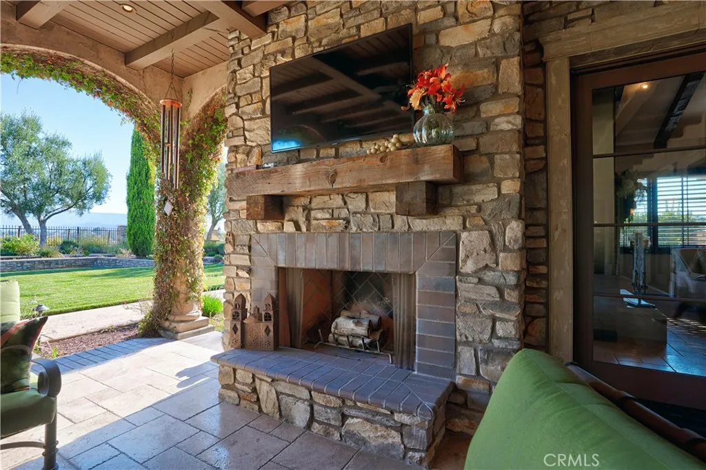 Experience refined luxury in this stunning Ponte Estates residence surrounded by Temeculas iconic vineyards and breathtaking mountain panoramas. This exceptional 5,391 sq ft, 3-bedroom, 4-bathroom home combines timeless craftsmanship with high-end modern technology, delivering the ultimate wine-country lifestyle. Located in one of the most desirable areas of Temecula Wine Country, this home is within walking distance to three of Temeculas most prestigious wineriesPonte, South Coast, and Wiens. Enjoy the ease of strolling to Ponte Winery, Ponte Vineyard Inn, and the Ponte Cellar, as well as indulging in fine dining right at Pontes celebrated restaurant. Inside, the home features soaring vaulted, beamed ceilings, exquisite custom alderwood cabinetry throughout, and elegant travertine tile flowing through the interior spaces and outdoor patios. Pocket doors allow you to separate living areas gracefully, while plantation shutters inside and storm shutters outside provide comfort, beauty, and added protection. A complete water filtration system, copper rain gutters, whole-house intercom system, and meticulous details throughout showcase quality at every turn. Energy efficiency and reliability are enhanced by a paid 30 panel solar system with battery backup. This true smart estate is equipped with an advanced Control4 system, allowing seamless control of every light in the home, the gated entry, and the entire security system. Outdoor living is unmatched, with expansive patios offering 360-degree views of vineyards, rolling hills, and the surrounding mountainsthe perfect backdrop