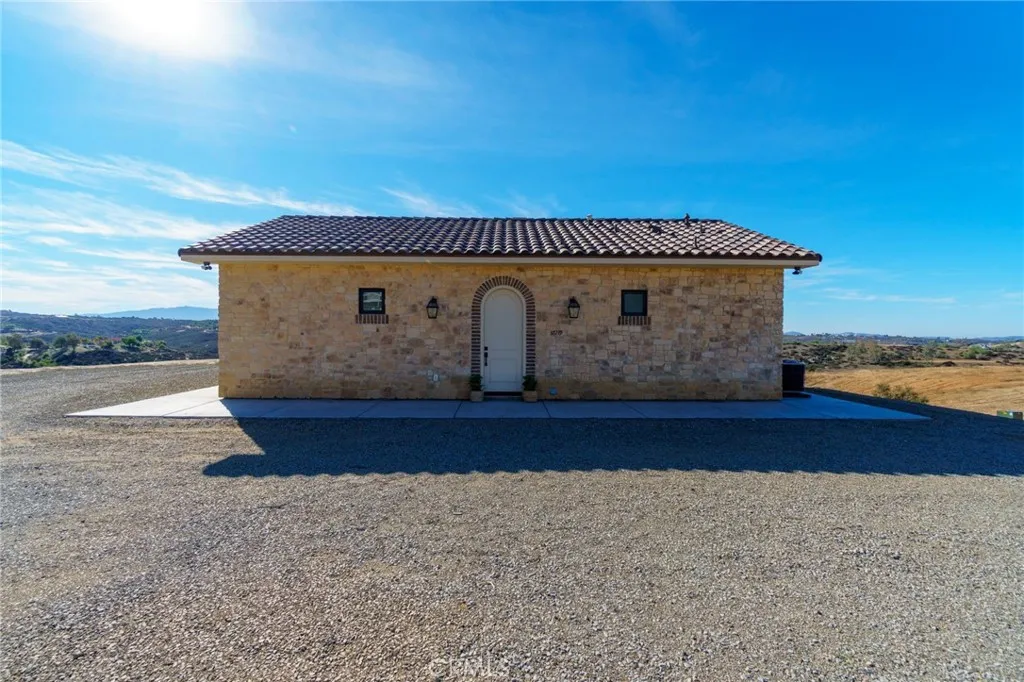 Unique Opportunity! 9+ acres, home on a hill with UNOBSTRUCTED VIEWS! Talk about getting away from it all! Originally designed to be a luxury weekend home, but living here full time would be an absolute dream! This property is a little East of Temecula's Wine Country and you will feel like you are totally away from the hustle and bustle. Private and secluded, but not too far from town. This home is stunning and can be expanded on. Stone work is gorgeous and the finishes inside the home feel like luxury. There is 1 bedroom and a small mini loft area that provides for a sleeping area with room for a full sized mattress or an elevated space to hide out and read or just relax. Custom tile shower with glass door. Stunning tile floors in the bathroom and laundry, which is in its own dedicated room. The kitchen is beautiful with lots of cabinet storage and has a spacious pantry. Upgraded countertops with a waterfall finish on the kitchen island. Farmhouse sink, 6 burner stove. Wood windows and sliding glass door. Wood ceiling beams. There are views from every window and from outside, you feel like you're on top of the world. Endless possibilities! Build onto the home, while living comfortably on site! Home is on a well, propane and septic. More than enough space for toys, animals and possibly another dwelling? The land and views are truly breathtaking! Don't miss out on this opportunity!
