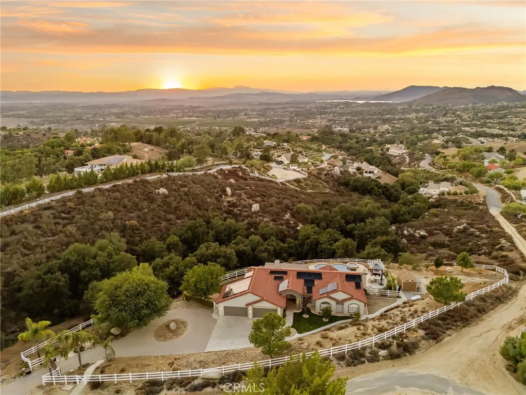 Discover Your Slice of Paradise: Temeculas Premier Wine Country Estate with Unrivaled Views! Wake up to Temeculas wine country, where rolling vineyards stretch to the horizon and colorful hot air balloons glide overhead. Nestled in the sought-after Glen Oaks Community, this single-story gem on 4.41 acres is a standout, offering panoramic views among the best in the region. Whether you're seeking a forever home, a weekend retreat, or a top-performing Airbnb, this estate delivers. Just minutes from nearly 50 wineriesincluding Wilson Creek and Callawayyoull live at the heart of Southern Californias wine destination, with world-class vintages and sunsets right outside your door. Low-maintenance, thoughtfully designed landscaping lets you enjoy luxury without the upkeep. Relax on the patio with a glass of wine or explore nearby walking and horse trailsthis is Temecula living at its best. Sustainability meets modern convenience with 42 fully paid-off solar panels that produced 28.5 MWh in 2024. Slash utility bills, earn energy credits, and charge up in the oversized four-car garage equipped with a 14-50 EV outlet. A private automatic gate leads to your scenic driveway and peaceful sanctuary. Step through grand double doors into a sun-filled living room and 2,833 sq ft of single-story comfort. With 4 spacious bedrooms, 3 full bathrooms, and a dedicated office, this home is designed for ease, flow, and functionperfect for remote work or relaxed gatherings. The luxurious primary suite features vaulted ceilings, a large walk-in closet, and a spa-style bathroom with dual vanities, a J