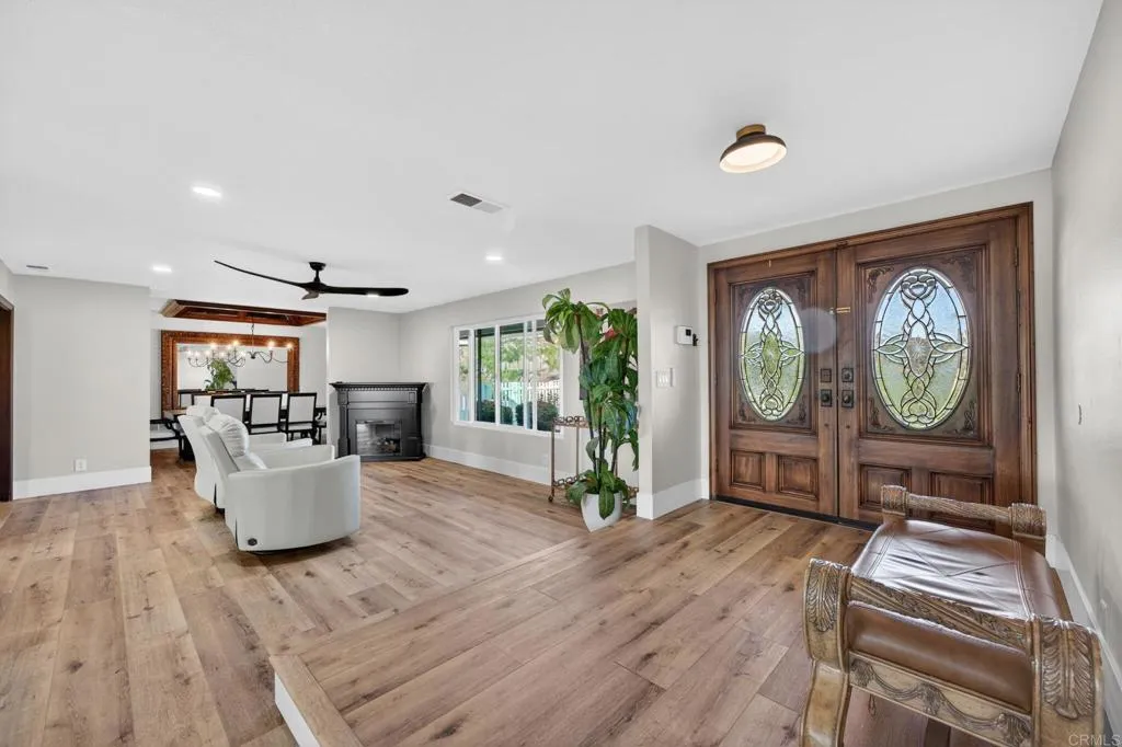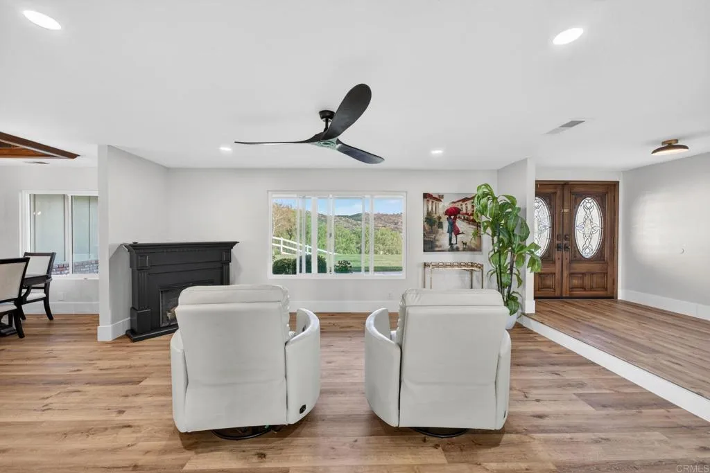 Welcome to your private Temecula Wine Country Retreatwhere space, style, and scenic beauty come together in perfect harmony. Recently appraised at $1,600,000 and priced to sell, this stunning single-story home is situated on a sprawling nearly 3.5-acre lot and offers 4 bedrooms, 4 bathrooms, and approximately 3,098 square feet of thoughtfully designed living spaceall while delivering the ideal balance of privacy and convenience just minutes from Temeculas renowned restaurants, shopping, and vibrant nightlife. Plus you are just minutes from some of the best wineries in the area! From the moment you step inside, youll be greeted by an abundance of natural light that fills the home, highlighting the elegant luxury vinyl plank flooring, LED lighting throughout, and open, airy layout. The expansive kitchen is truly the heart of the home, featuring an oversized island perfect for gathering, entertaining, and everyday living. Whether hosting guests or enjoying a quiet night in, this space is designed to impress. The well-designed floor plan includes four spacious bedrooms, two of which feature en-suite bathroomsperfect for added comfort, privacy, and multi-generational living. The formal dining room showcases a beautiful coffered ceiling, adding a touch of architectural elegance for hosting and special occasions. Thoughtful design continues throughout the home with custom built-in shelving that adds both style and functionalityideal for showcasing dcor, books, or creating an organized space. Vinyl windows and sliding glass doors enhance energy efficiency while seamlessly connectin