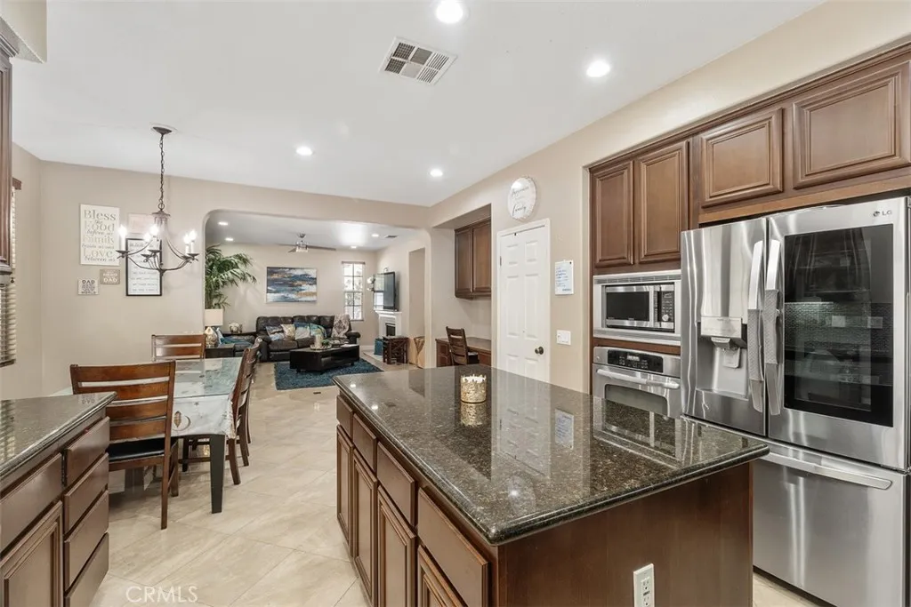 Nestled in the heart of Temecula's prestigious Harveston community, this expansive two-story home offers 5 bedrooms and 3 bathrooms, providing ample space for both relaxation and entertainment. The thoughtfully designed floor plan includes a convenient downstairs bedroom and full bathroom, ideal for guests or multi-generational living. Upon entering, you're greeted by a welcoming foyer that leads to formal living and dining areas, perfect for hosting gatherings. The gourmet kitchen boasts granite countertops, stainless steel appliances, and a spacious island, seamlessly flowing into the cozy family room with a fireplace. Upstairs, the luxurious master suite features a spa-like en-suite bathroom with dual vanities, a soaking tub, and a walk-in closet. Three additional bedrooms and a 2 full bathroom complete the upper level. The backyard serves as a private oasis with a covered patio, fruit trees, and ample space for outdoor activities. Residents of Harveston enjoy unparalleled amenities, including a 17-acre lake with walking paths, a community clubhouse, a junior Olympic-sized pool, spa, splash park, and a 19-acre sports park equipped with lighted baseball diamonds and soccer fields. The neighborhood also offers dedicated walking and biking paths, multiple parks, and is within walking distance to top-rated schools such as Ysabel Barnett Elementary and Chaparral High School. Experience the perfect blend of luxury and community living in this exceptional Harveston home.