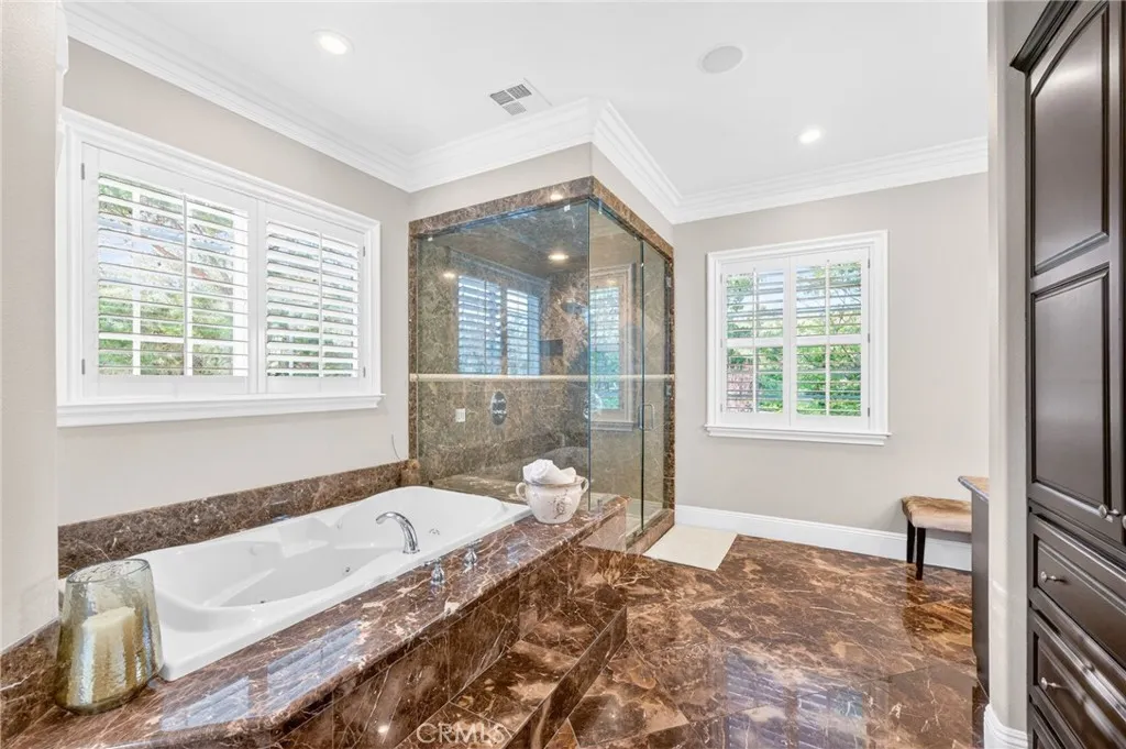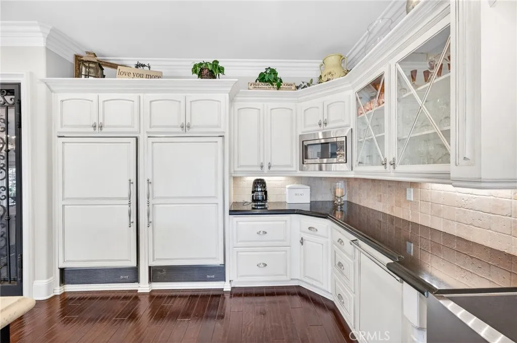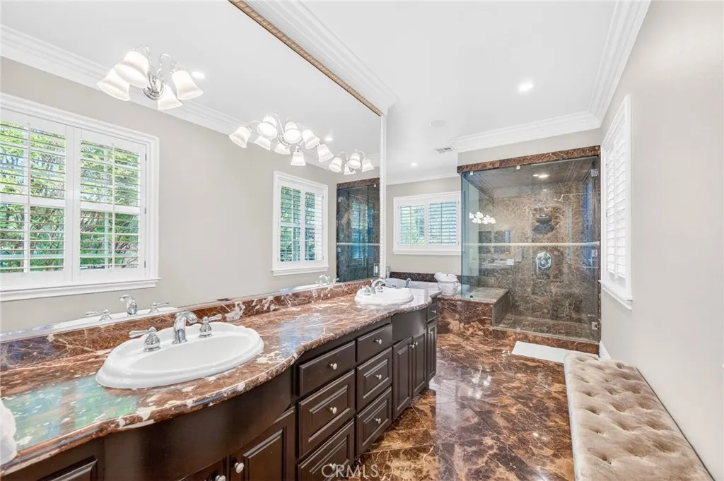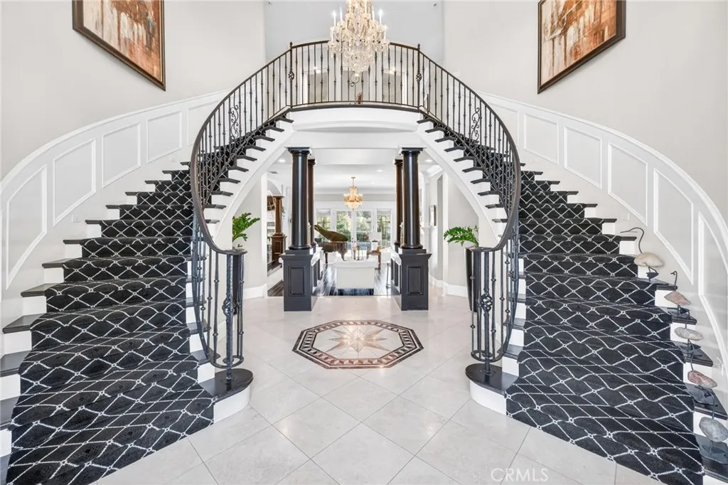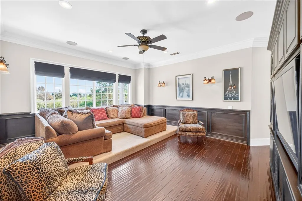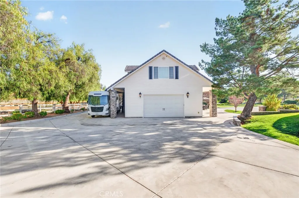 Experience refined country living in this extraordinary luxury estate in Temecula Wine Country, offering approximately 6,887 square feet of thoughtfully crafted living space on five usable acres. The estate features a main home and a guest home with the main home having six spacious bedrooms, including two on the main level, and five and a half bathrooms. The oversized kitchen impresses with a striking large granite island, Thermador double ovens, and a Sub-Zero refrigerator. Hardwood flooring enhances the main living areas, while a carpeted staircase leads to the second level, where hardwood floors continue alongside four additional bedrooms, three bathrooms, a laundry room, and a bonus movie room. Step outside to a true backyard retreat, complete with a resort-style pool and spa, outdoor kitchen, and beautifully landscaped patio. Dramatic, castle-inspired stairways lead to a basketball court, detached garage and pasture with barn and arena. A private ADU guest home sits above the garage, offering a versatile space ideal for guests, extended family, or potential rental income, with convenient RV parking nearby. The expansive, flat acreage also provides ample opportunity for equestrian use or additional outdoor amenities. This exceptional property offers a rare blend of luxury, privacy, and endless potential in one of Southern Californias most desirable settings. For added convenience, RV parking with a dedicated plug is located adjacent to the ADU. This 6 bedroom home is located in Country Road Estates which consists of 128 - 5 acre parcels just on the edge of Temecula Win
