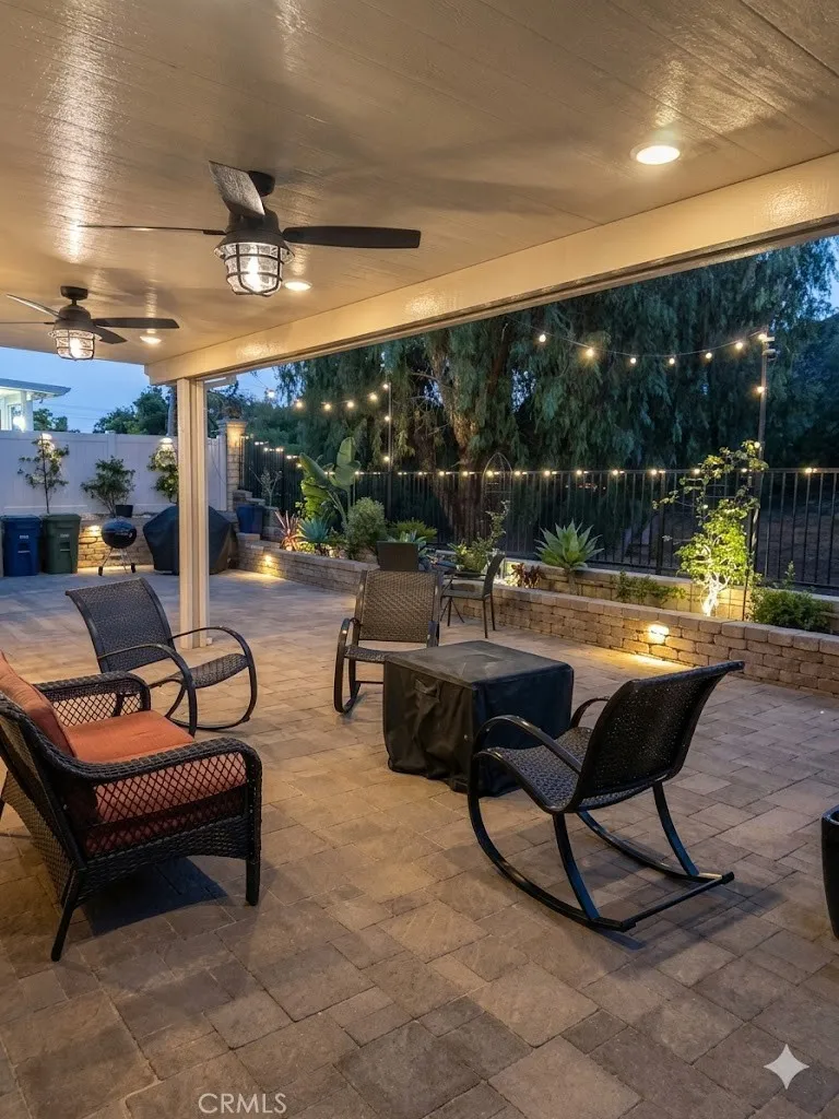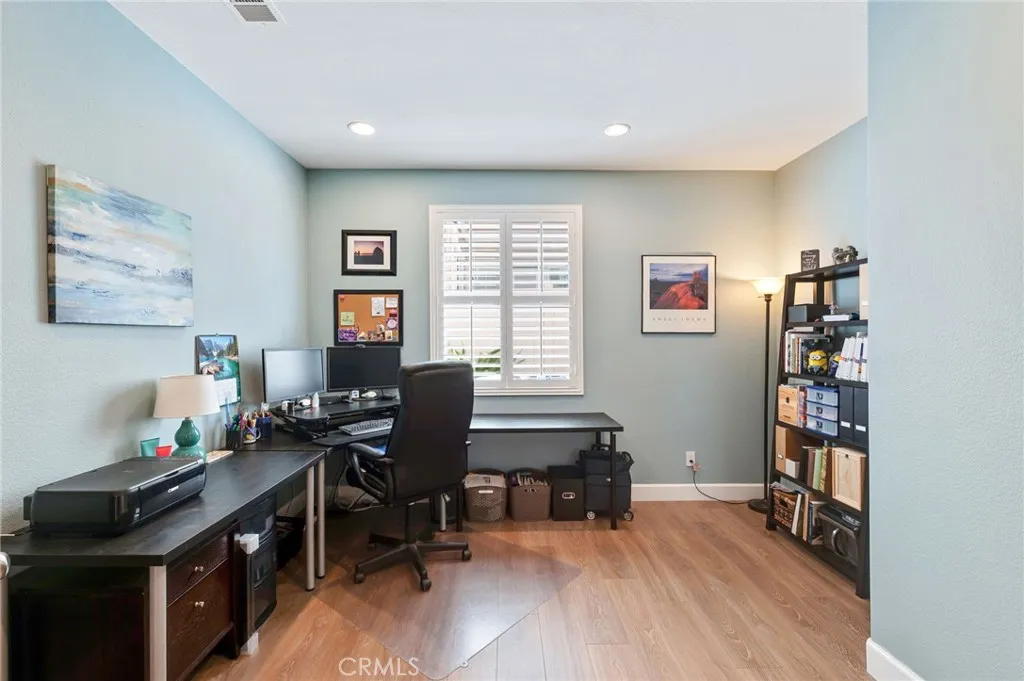 Beautifully upgraded Redhawk golf course home offering 5 bedrooms, 3 bathrooms, and approximately 2,916 square feet, ideally located in one of South Temeculas most sought-after communities. Perfectly positioned along the 16th fairway, this home captures scenic golf course, tree, mountain, and peek-a-boo views from a thoughtfully landscaped setting. The desirable two-story floor plan features a main-floor bedroom and full bath, spacious open living areas, and extensive upgrades throughout. The redesigned kitchen seamlessly opens to the family room and showcases an expanded island with seating, quartz countertops, stylish backsplash, soft-close cabinetry, and an enlarged walk-in pantry, creating both functionality and a modern aesthetic. Interior enhancements include new wood laminate, tile, and carpet flooring, added recessed lighting, refinished cabinetry with upgraded countertops and undermount sinks, plantation shutters, coordinated ceiling fans, custom closets in every bedroom, updated bathroom tile, a custom linen cabinet in the primary suite, and a custom barn door at the laundry room. Additional improvements include upgraded switches and outlets, overhead garage storage, plus a newer A/C system and water heater. The exterior has been thoughtfully upgraded for both beauty and usability, featuring redesigned landscaping, new retaining walls and planters, and extensive paver hardscaping across the side and backyard. A custom patio cover with lighting, ceiling fans, outlets, and gutters creates an inviting outdoor living space, ideal for relaxing or entertaining. Addition