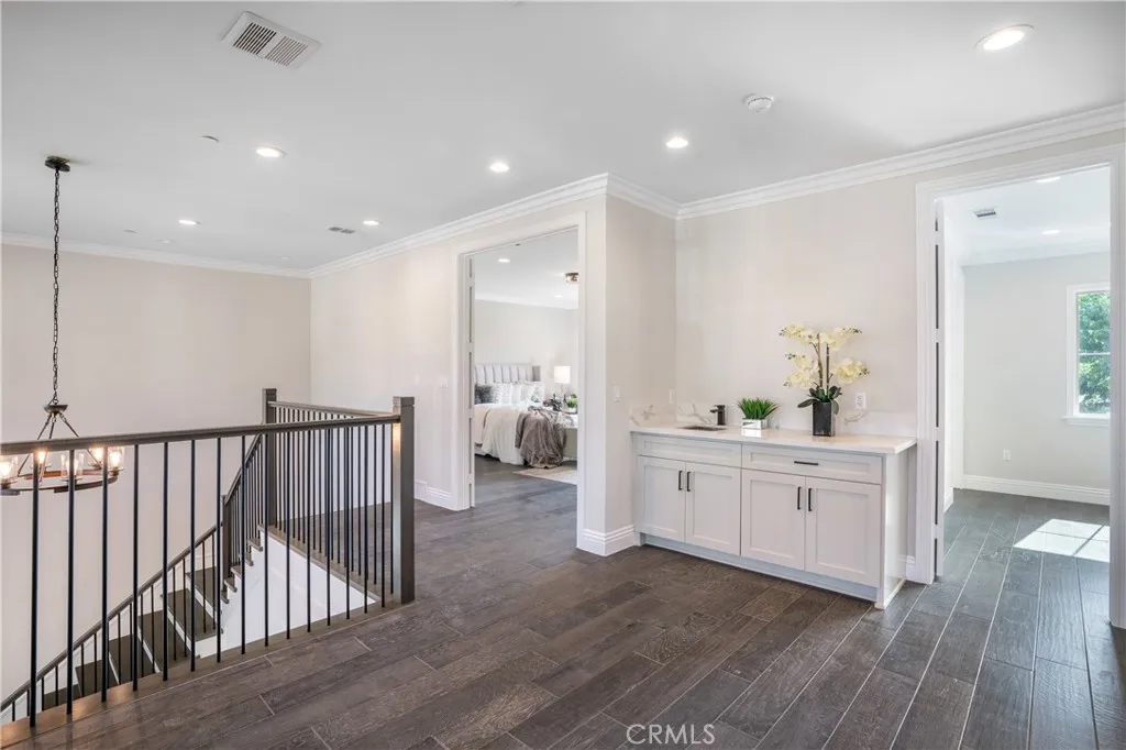 Arcadia School District!! The brand new home built in 2025! This unique custom two story home features 4 bedrooms, 4.5 baths, a specious home office, laundry room and 3 cars attached garage. The steps front porch takes you into double door entry into a high ceiling foyer, a stunning living room with a custom fireplace, exquisite formal dining room. The home has two kitchens, a chef's dream Wok room and a gourmet kitchen is an open concept with quartz center island counter top opens to a large family room filled with natural light through the double sliding doors, a breakfast nook area and a specious wet bar. The elegant iron staircase leads to the second floor features a luxurious master bedroom suite with a walk-in closet, double sinks, a soaking bath tub. ALL EN-SUITE BEDROOMS! and a very relaxing den for everyone. Super large balcony upstairs is a perfect sitting area overlooks the lush landscaping of the front home and mountain views. Modern light fixtures, crown moldings, tiles and hardwood throughout the interior. Security camera system and alarm system. Solar panel installations are fully paid off. There are so much more about this home that you have to come see for yourself!