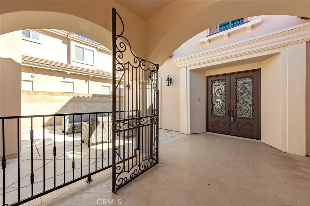 LOCATION! JUST A WALL AWAY FROM ARCADIA. Built in 2022, this distinguished Spanish-style residence is located in North Temple City, just a wall away from Arcadia. Behind the stately wrought-iron gates lies an exquisitely landscaped front courtyard with a welcoming outdoor fireplace, setting the tone for elegance and warmth. Step through the impressive double doors into a grand foyer with soaring 20-foot ceilings, where natural light cascades across the space in a stunning display of scale and sophistication. Intricate ceiling moldings, expansive door frames, and custom wall paneling throughout the home highlight exceptional craftsmanship and timeless design. To the left, a bright formal living room opens to the front courtyard lounge; to the right, a gracefully curved staircase with ornate railings captures both grandeur and artistry. The formal dining room flows seamlessly into a light-filled open layout, leading to a gourmet chefs kitchen adorned with a waterfall island, designer backsplash, and a separate prep kitchenblending luxury with everyday functionality. Adjacent to the kitchen, the sun-drenched breakfast area overlooks the private backyard, offering a serene setting to enjoy the morning light with family. Opposite the breakfast area, the family room connects through sliding glass doors to the expansive yard, creating a perfect balance between indoor comfort and outdoor tranquility. This remarkable residence stands out for its generous layout, refined architectural detailing, and exceptional privacy. Every inch of the home exudes sophistication and elevated living