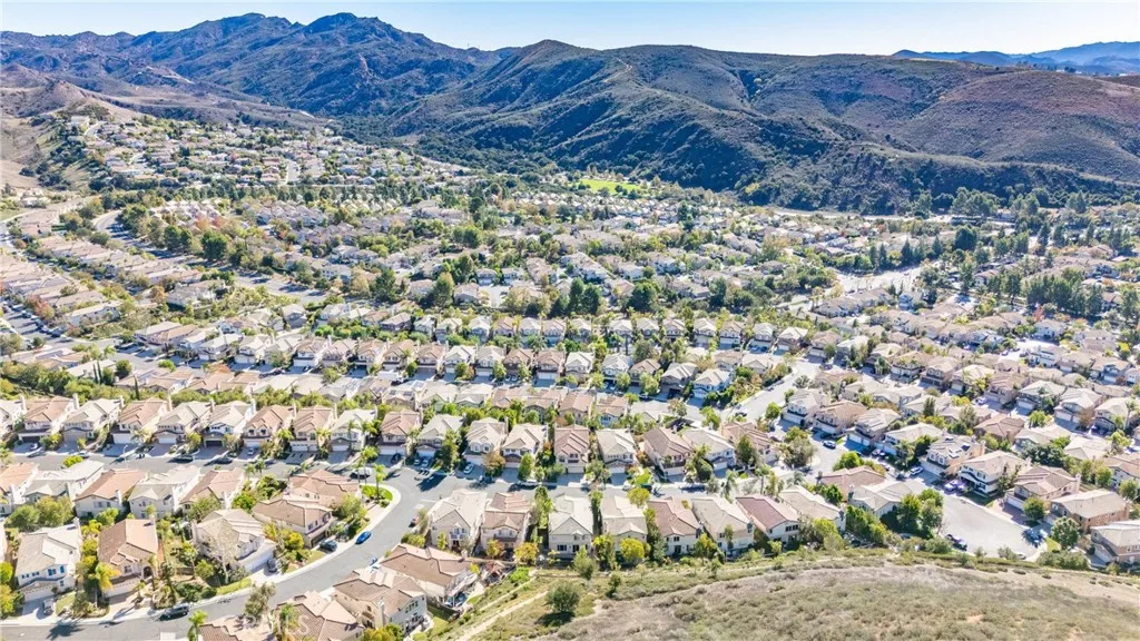 Welcome to 2827 Arbella Lane, an elegant sanctuary nestled in the gated community of Eagle Ridge, in the heart of Thousand Oaks. This is one of the few homes in Eagle Ridge with a private pool and spa making it a truly special and unique offering. Spanning 2,752 square feet, this sophisticated residence marries luxury with comfort. The home boasts four spacious bedrooms and three luxurious bathrooms, offering ample space for relaxation and entertainment. The main level reveals soaring high ceilings with tons of natural light. There is a main level versatile bedroom, perfect for guests or as a private home office. Venture further to discover a chic entertainers room, complete with a stylish bar, ideal for hosting intimate gatherings. The gourmet kitchen is equipped with top-of-the-line appliances, including a Bosch refrigerator and Viking cooktop, promising culinary adventures. The kitchen is open to the large family room with fireplace. Upstairs the romantic Primary Suite with views of the hills, includes a designer chandelier, his and hers closets, dual vanity, large shower, and soaking tub. Upstairs you will also find a loft area with built in shelves and seating area, perfect for a library, study, or kids play space. Step outside to enjoy California's splendid weather in your private oasis featuring a sparkling pool and rejuvenating spa. There is even a built in bbq. The thoughtfully designed 5,316-square-foot lot offers tranquility and privacy, complementing the home's sophisticated aesthetic. With modern conveniences like an upstairs laundry including washer and dryer,