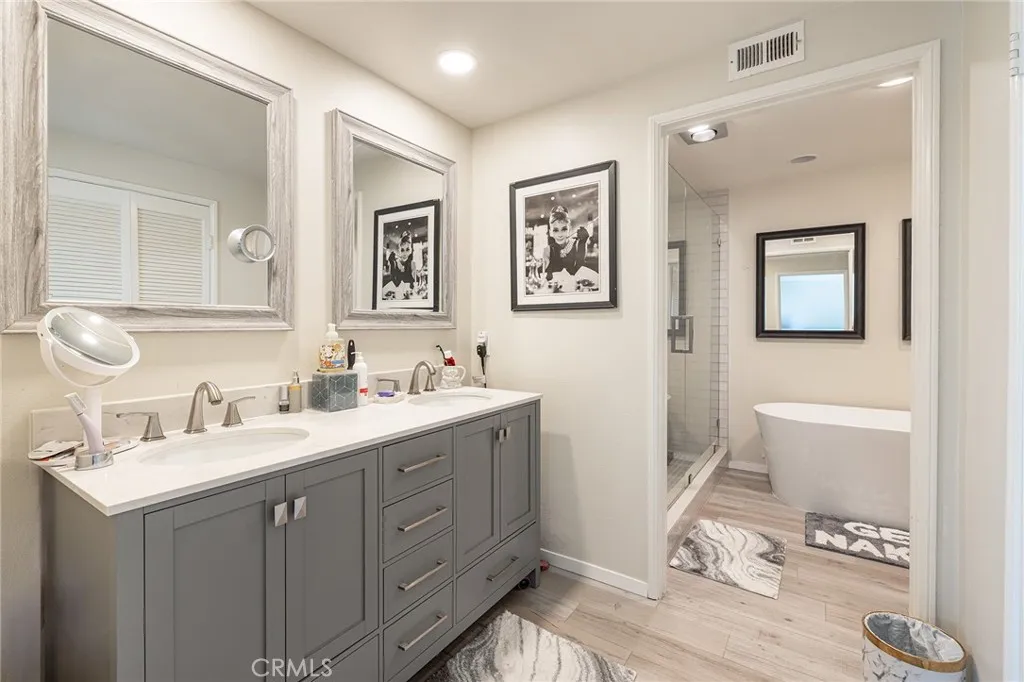 Welcome to this absolutely gorgeous home located in the highly sought after Sunset Hills neighborhood of Thousand Oaks! This fully remodeled turnkey home is situated in East Hill and is surrounded by Sunset Hills Golf course. The 4 Bedroom -3 full bathroom home with vaulted ceiling and new flooring throughout, creating a bright, open indoor-outdoor living experience. This spacious layout includes a downstairs bedroom with a full bathroom a large living room with a cozy fire place, a formal dining and a large family room great for all family gatherings with floor to ceiling windows and sliding glass doors opening to the backyard. With updated kitchen features and top of the line appliances, an eating area and beautiful upgraded kitchen cabinets. All bathrooms are upgraded. The Master bedroom has high ceiling, a large walk in closet a master bathroom suite with separate and updated bathtub and shower. All bedrooms and bathrooms are large and glamorous. The Backyard is private and full of charm, ideal for gatherings and quiet retreats. Whole house soft water system. The East Hill HOA residents living in this community have a private/for residents only walkway/Paseo system which meanders around the community with magnificent views of the Sunset Hills with two private parks for residents only. This is a Gem home in a community with long term residents who pride themselves in belonging to it. Great school district, close to shopping, parks and all you desire in a great neighborhood. Move in ready, this home perfectly blends modern comfort, tranquility and prime Thousand Oaks livi