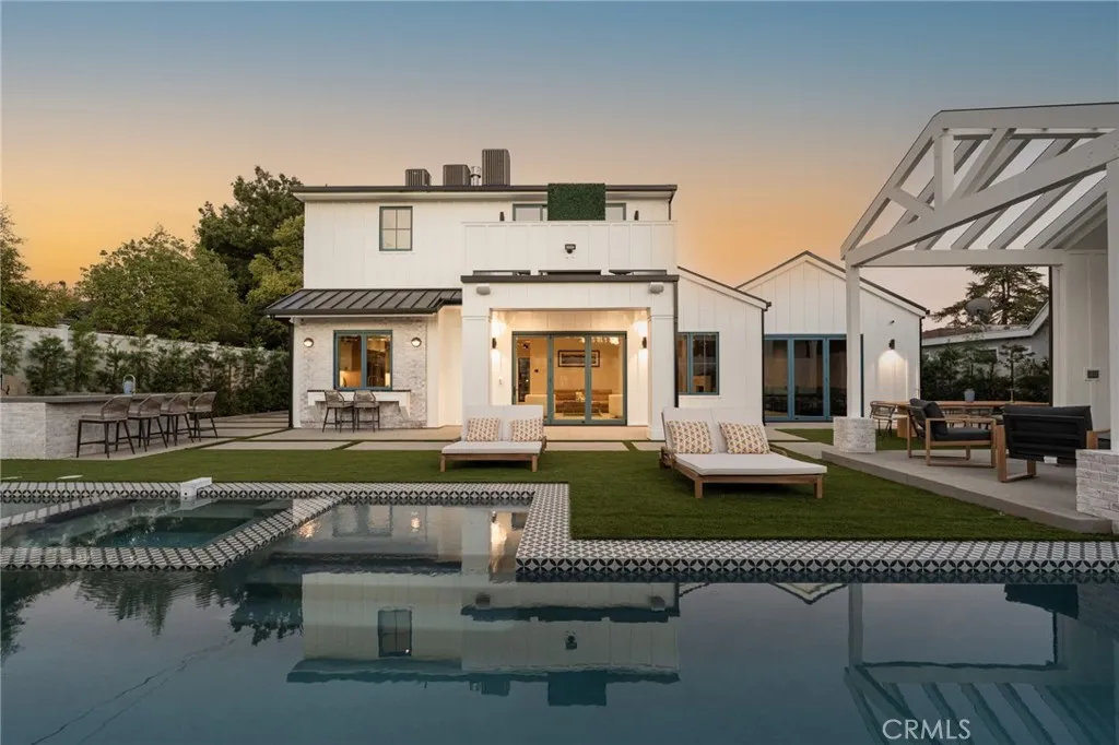 Welcome to your not-so-typical modern farmhouse, nestled in the charming neighborhood of Toluca Woods. This stunning new construction property embodies luxury and sophistication across its expansive 4,000 sqft, seamlessly combining modern design with wellness-centric features that cater to your every need. Step inside to an expansive foyer that leads into a light-filled open-concept living space, designed for both comfort and elegance. The gourmet kitchen is a culinary dream, featuring top-of-the-line appliances from renowned brands like Wolf, Cove, and Sub-Zero, along with custom cabinetry and a large island with a bar top, perfect for casual meals or entertaining. This magnificent home features four generously sized bedrooms, each with its own luxurious en-suite bath. The bathrooms are designed with high-end fixtures and spacious walk-in showers. Upon entering the primary suite, youll be greeted by a cozy fireplace that sets the mood for relaxation. A corner bar adds a touch of indulgence, while double doors lead to an exclusive balcony, overlooking the backyard and a perfect spot for morning coffee. The en-suite bathroom, features a soaking tub, offers a true spa-like experience. The boutique-like walk-in closets feature custom shelving and ample space for even the most extensive wardrobe. This home prioritizes your well-being with the Ketra Circadian Lighting system, syncing with your bodys natural rhythms for better sleep and health.The Crestron smart home system offers seamless control, while live plant walls bring nature indoors, creating a calming ambiance. The Delo