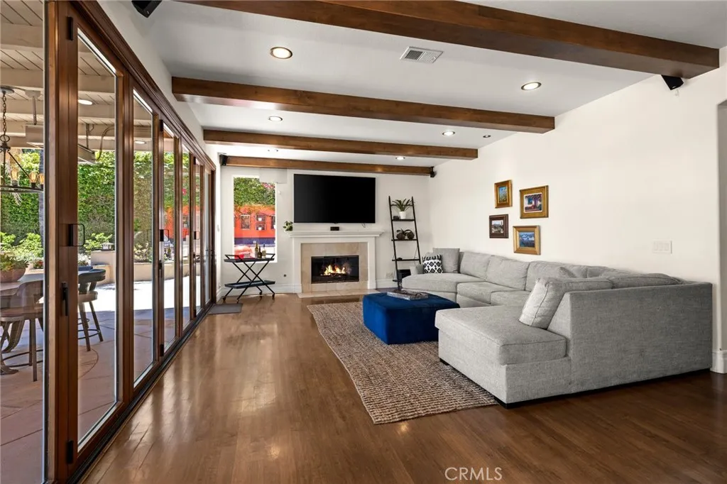 Guard-gated canyon estate with panoramic mountain and Catalina views, just minutes to Malibu beaches and Calabasas shopping and dining. Set high above the valley in Summit Pointe, this private home blends dramatic scale with peaceful canyon living. Double-height living and dining spaces frame sweeping vistas and open to a resort-style backyard with saltwater pool and spa, outdoor fireplace, built-in BBQ, covered patio, mature trees, and refreshed landscaping, ideal for entertaining or quiet retreat. Folding glass doors create seamless indoor-outdoor living. The open-concept kitchen with large center island flows into the main living areas, perfect for gatherings. The main level includes a guest suite with ensuite bath and two flex rooms ideal for a home office, gym, media room, or studio, plus powder room, laundry, and multi-car garage. Upstairs, the primary suite spans the rear of the home with a private balcony overlooking the mountains, spa-style bath, dual walk-in closets, and separate office or wellness area. Three additional bedrooms each feature private baths, including one with a steam shower. Smart home technology, EV charging, surround sound, patio heaters, and new HVAC provide modern comfort. Nearby premier equestrian facilities, including Fair Hills Farms, and easy access to Malibu beaches, canyon trails, golf, and the Calabasas-Malibu scene come together here in a way that is hard to find elsewhere.