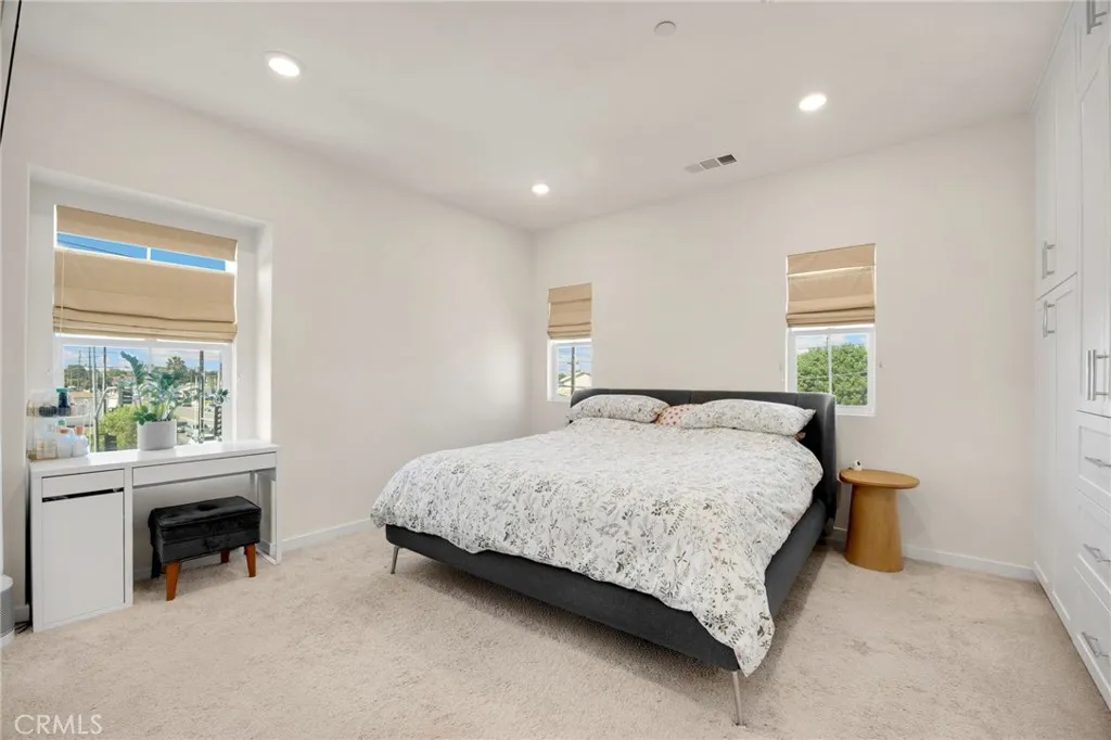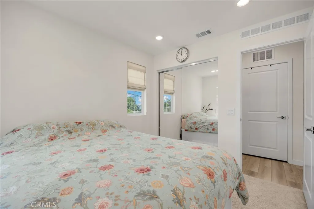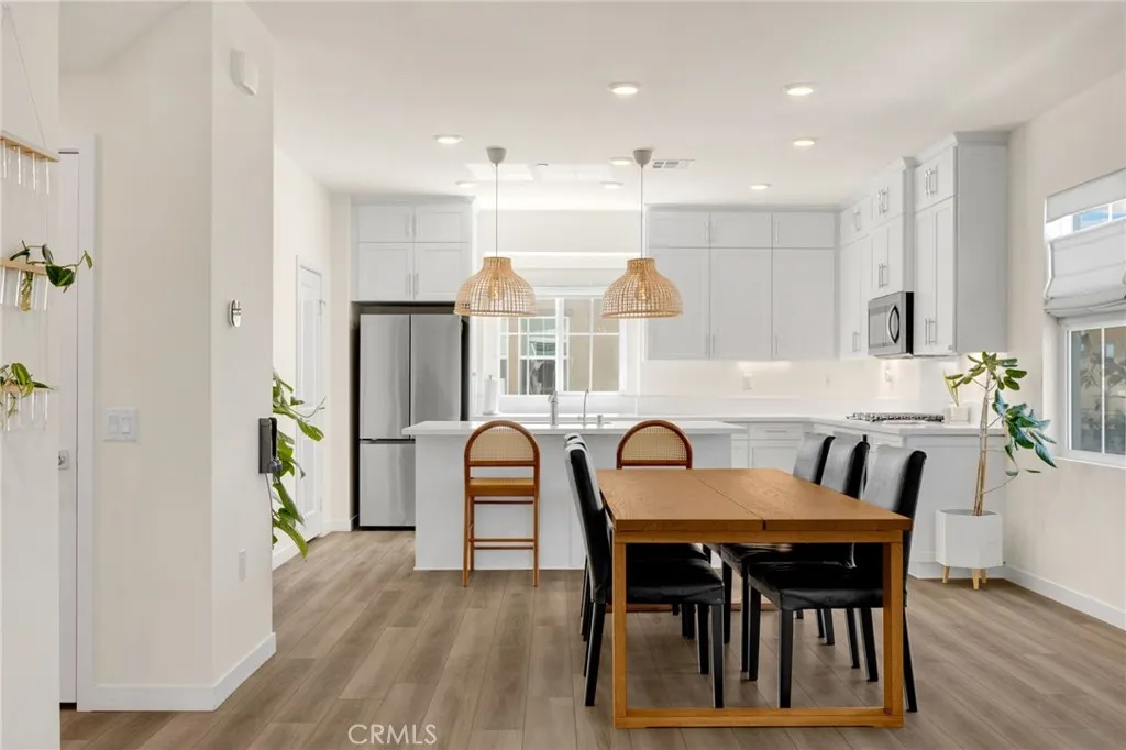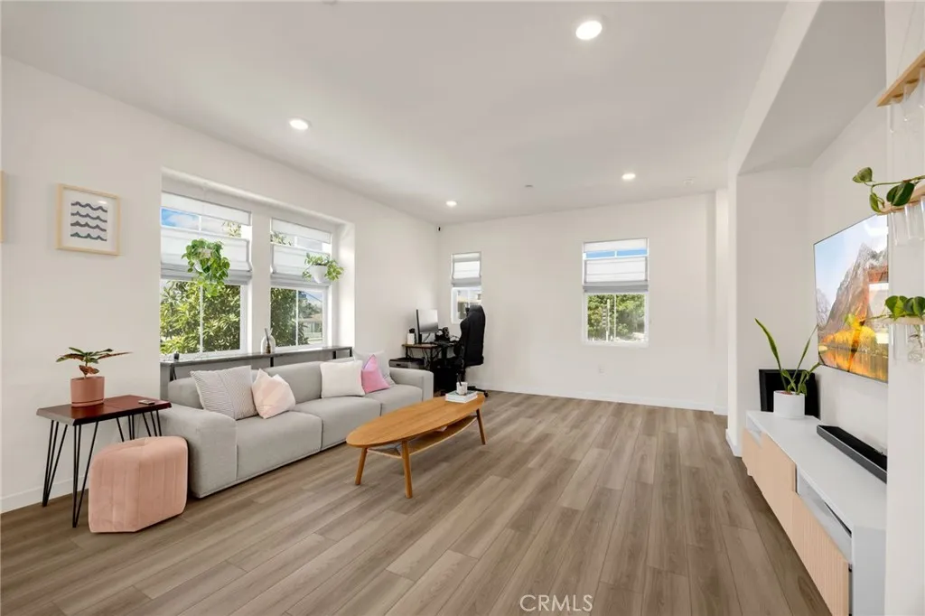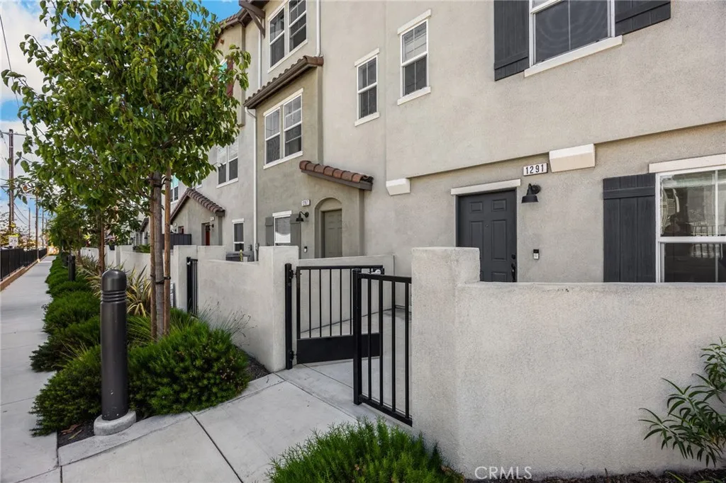 Discover elevated living in this stunning 3-story energy-efficient home, perfectly positioned as a desirable end unit for added privacy and exceptional natural light. Nestled within a gated community, this residence offers enhanced security and a tranquil lifestyle. The inviting front porch leads to a rear-facing 2-car garage and a versatile lower-level den with generous storage. The second floor showcases a spacious great room and a uniquely upgraded chefs kitchenexclusive to this homefeaturing a stunning stone center island, walk-in pantry, Whirlpool stainless steel appliances, soft-close drawers, stacked upper cabinets, under-cabinet lighting, and sleek modern finishes. Upstairs, enjoy three bedrooms, two full baths, and a convenient laundry area. The luxurious primary suite includes a frameless glass shower, dual vanity, and a full-wall custom closet system. Smart home features include lien-free solar panels, Wi-Fi-enabled thermostat and oven, tankless water heater, and EV charging conduit. With easy access to major freeways, top employers, parks, shopping, and dining, this home blends comfort, style, and convenience in one exceptional offering.