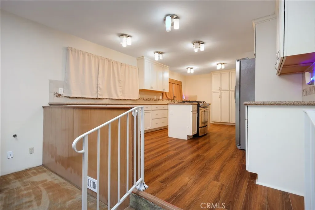 This spacious 1960s-era home offers a rare opportunity to reimagine a classic floor plan with abundant square footage and exceptional indoor-outdoor flow. Upon entry, you are welcomed by a foyer with a staircase leading upstairs, setting the tone for the homes multi-level design. Just a few steps down, the expansive living room overlooks the large backyard, creating a bright and open gathering space. To the left of the main living area, a hallway leads to two bedrooms and a guest/shared bathroom, thoughtfully separated from the primary living spaces. The living room and family room are divided by a sliding screened door, offering flexibility for both open and defined entertaining. The family room features a wood-burning fireplace and sits slightly below the kitchen and dining area, adding character and dimension to the home. The kitchen has been updated with plentiful neutral cabinetry and stone countertops and connects seamlessly to the dining area. Together with the entry, living, family, and kitchen areas, the home features a circular floor plan that enhances flow while keeping the bedrooms tucked away from the main living spaces. A new 200-amp electrical panel was installed in 2024, providing a solid foundation for future upgrades and remodeling. Upstairs, a generous bonus area provides endless possibilities and can easily serve as a home office, game room, playroom, or home theater. To the left are one bedroom and two bathrooms, while the right side offers two additional bedrooms, creating a functional layout with flexibility for a variety of needs. The home is ready f