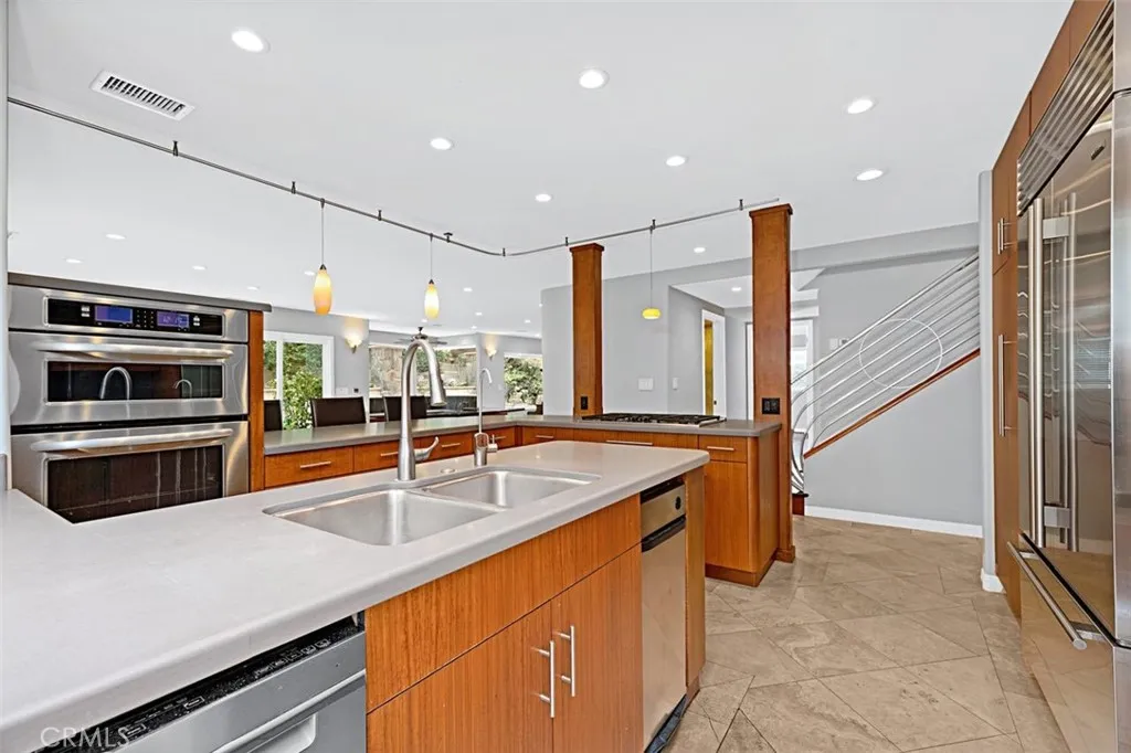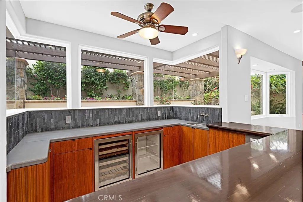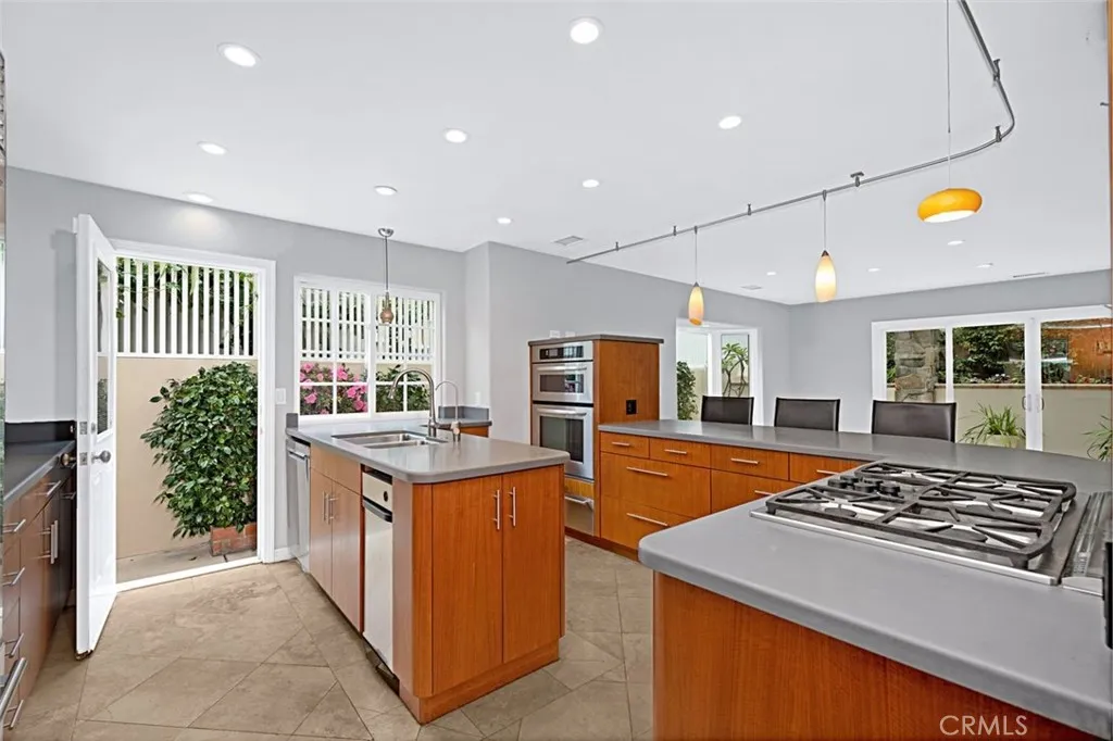 European Style set in a sought-after neighborhood within the West High School district, this large three-bedroom residence combines impressive scale with refined comfort. The homes centerpiece is a high-end, European-style kitchenbeautifully remodeled with premium finishes and appliancesthat flows into an expansive family room anchored by a sunken bar, Sub-Zero refrigerator, and wine cooler. Perfect for entertaining, the entire living area opens to a lush tropical patio retreat complete with a cascading waterfall and pond, built-in fireplace, and barbecue. The sizeable primary suite encompasses the second floor, offering a serene retreat with an adjoining private office that could be 4th bedroomideal for working from homeplus an atrium and flex space for music, workout, yoga or storage ..! The two additional bedrooms downstairs provide flexibility for guests or family. Lovingly maintained, this residence is as solid as it is inviting. Its distinctive interiors are ready to be personalized, refined, or simply enjoyed as is. A rare offering in West Torrance, where location, lifestyle, and livability meet in perfect harmony.