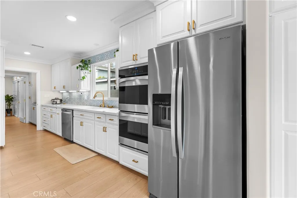 Welcome to 22631 Kathryn Ave, a beautifully reimagined coastal-inspired home in one of Torrances most sought-after neighborhoods. Step inside to discover brand-new flooring and an inviting open-concept living space designed for effortless entertaining. The stunning chefs kitchen features sleek new countertops, an oversized island with a built-in beverage refrigerator and a professional cooktop, plus a stylish coffee bar and coffee cabinet that add both charm and functionality. Every detail has been elevated, from the solid wood doors with brass hardware to the custom closet doors and built-in cabinetry in the laundry room. Fresh interior paint complements the homes thoughtful upgrades, creating a bright and cohesive aesthetic throughout. Both bathrooms have been transformed into luxurious spa-like retreats, complete with West Elm vanities, designer finishes, and a serene ambiance. Modern comforts abound with a new HVAC system, tankless water heater, and updated amenities that enhance everyday living. The home seamlessly connects to the outdoors, where youll find a relaxing jacuzzi, outdoor shower, and new vinyl access gate for added privacy. French doors have been newly installed from the garage, opening the space to the backyard and enhancing indoor/outdoor flow. The garage itself is fully upgraded with epoxy floors, cabinetry, overhead storage, and even a concrete slab behind the garage for additional storage needs. Perfectly located, this home offers the best of the South Bay lifestylejust a 12-minute bike ride to the beach, a short stroll to Seaside Elementary, and only