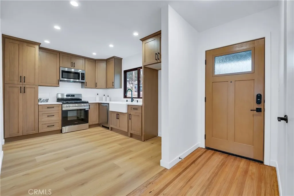 New Price Improvement!!! Welcome to your future home at 25710 Crest Rd, a true Honey, stop the car! opportunity in the desirable Hillside Walteria neighborhood of South Torrance. This beautifully updated 4-bedroom, 1.75-bath home is ideally located just half a mile from Rolling Hills Estates and less than five miles from the beach. Boasting exceptional curb appeal, it features new exterior paint, Hardie siding, a 50-year CertainTeed Presidential Shingle roof, new fascia boards, soffits with casement lighting, three new exterior fixtures, an oversized custom garage door, a new paver driveway, tankless water heater, 200 AMP electrical panel, EV charger, and a stunning Signet fiberglass entry door with privacy glass. The front and rear landscaping showcase new sod, sprinklers, and drip systems, along with a Carrotwood tree, Green Gage plum tree, apple and lemon trees, and 45 new privacy trees in the backyard. Inside, natural light fills the open living room with refinished original hardwood floors, smooth ceilings, new baseboards, and LED recessed lighting that flows into the dining area with beautiful views. The fully remodeled kitchen features new soft-close cabinetry, quartz countertops, a farmhouse sink overlooking the landscaped front yard, stainless steel appliances, and luxury laminate flooring. The sunroom has been converted into a fourth bedroom with a private bath, recessed lighting, mirrored closets, and direct access to the rear yard. Both bathrooms include new marble flooring, full bathroom has new vanity, and elegant finishes. Additional highlights include new d